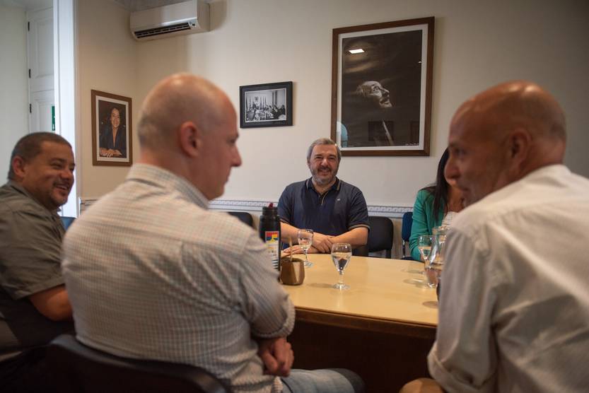 Francisco Legnani, Germán Benítez, Leonardo Herou, Mario Bergara y Viviana Repetto, el 17 de enero, en la Huella de Seregni.