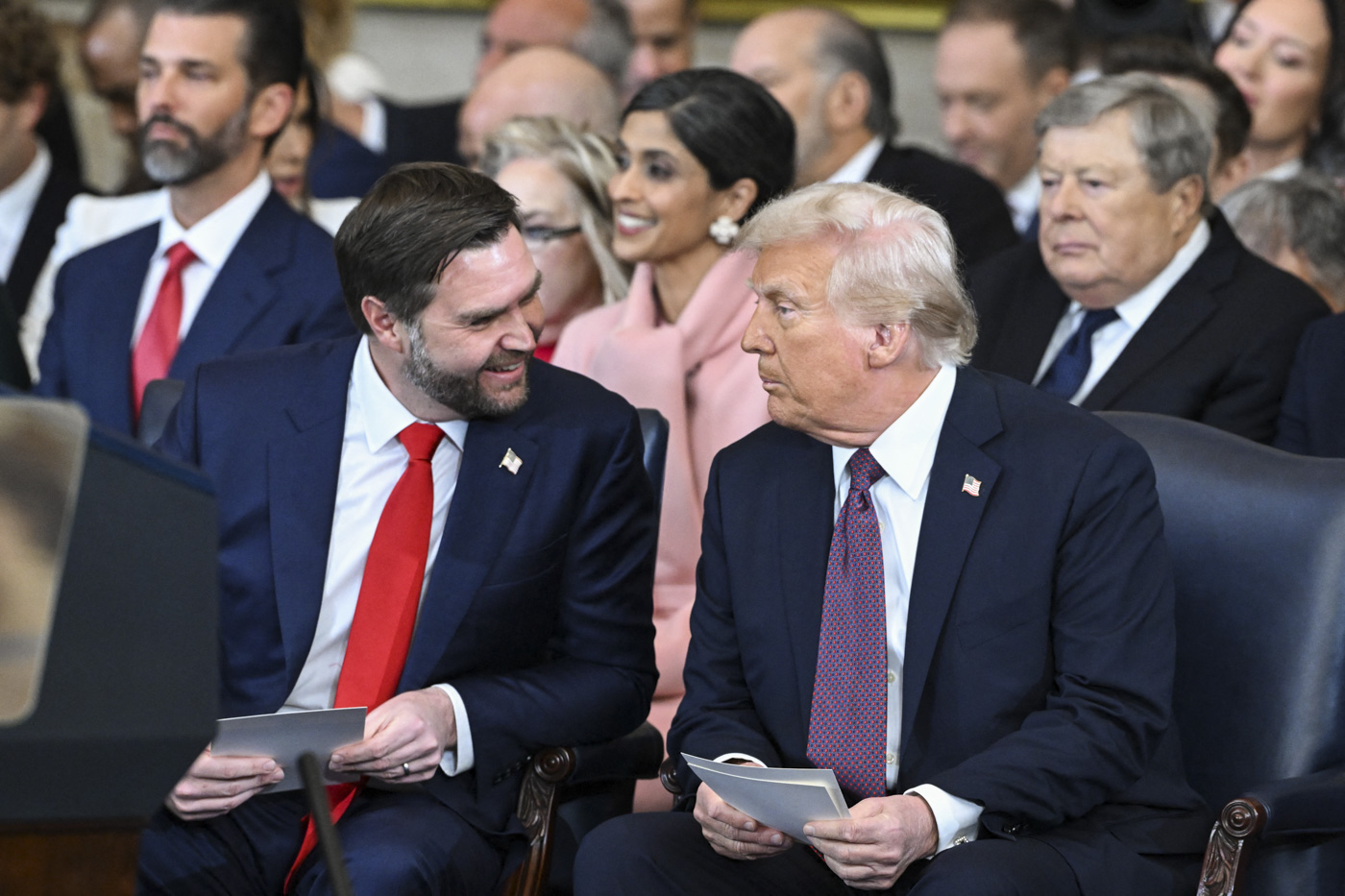 El vicepresidente electo de Estados Unidos, J.D. Vance, y el presidente electo Donald Trump durante la ceremonia de investidura.