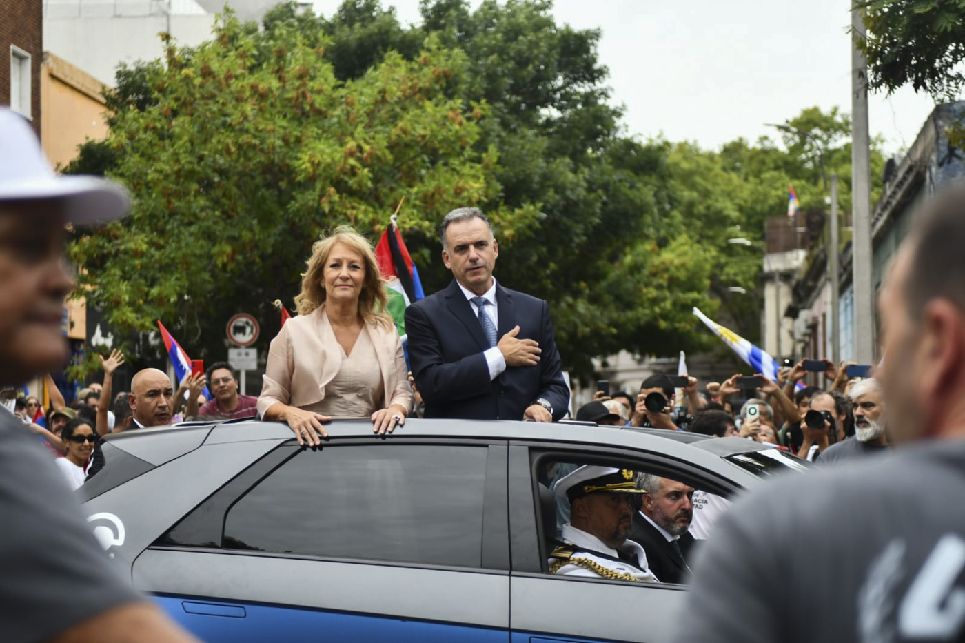 Carolina Cosse y Yamandú Orsi frente a los integrantes de Familiares de detenidos desaparecidos.