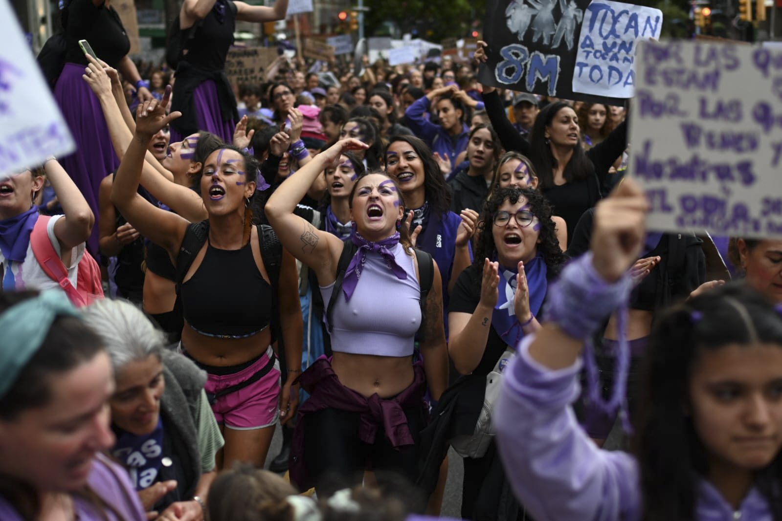 Marcha por el Día Internacional de la Mujer, en el centro de Montevideo.