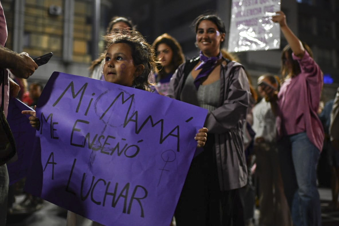 Marcha por el Día Internacional de la Mujer, en el centro de Montevideo.