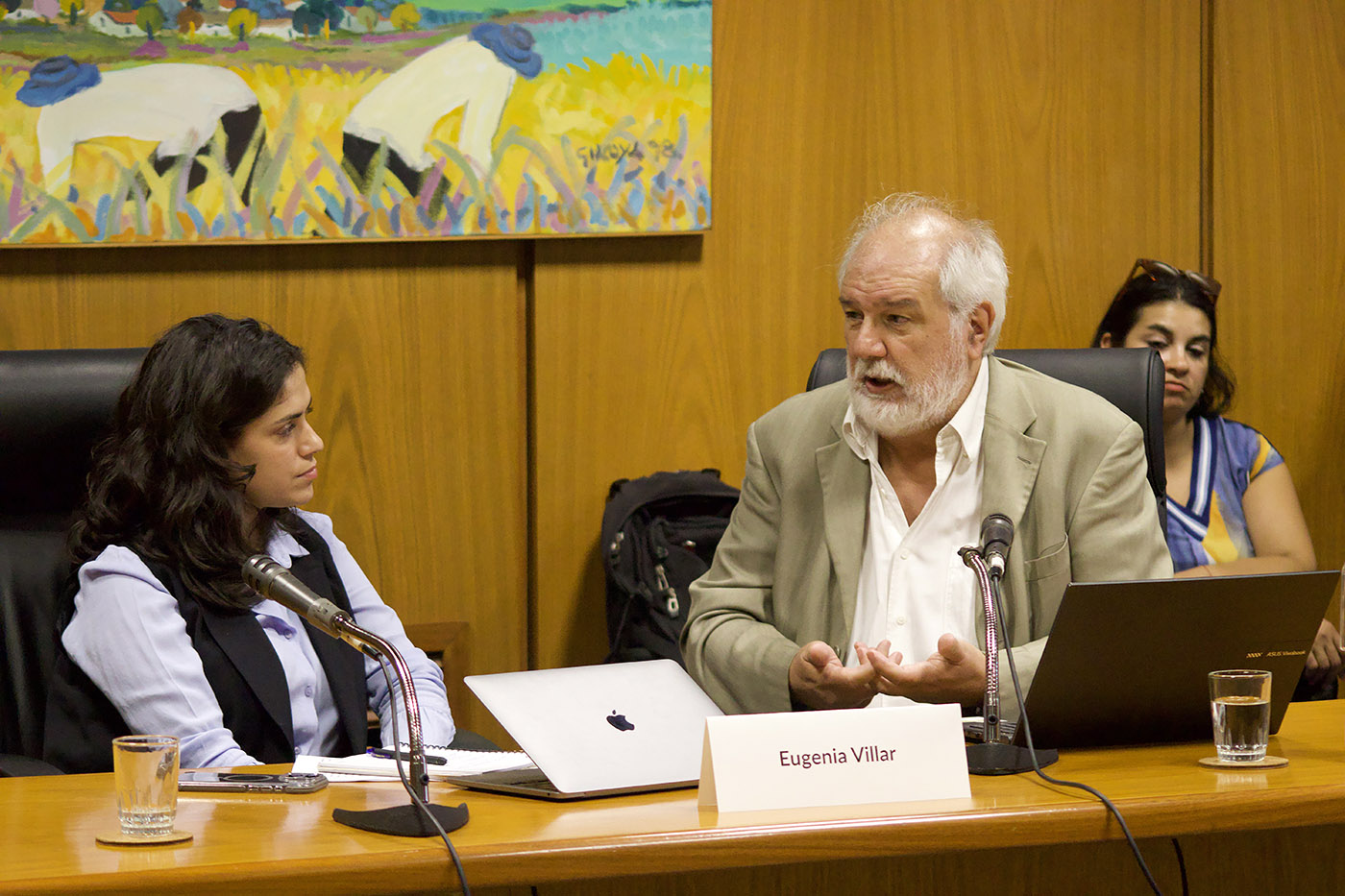 Eugenia Villar y Luis Bértola, durante el debate hacia una Estrategia Nacional de Desarrollo. Foto: Sebatián Bustamante, Comunicación Lista 1001.