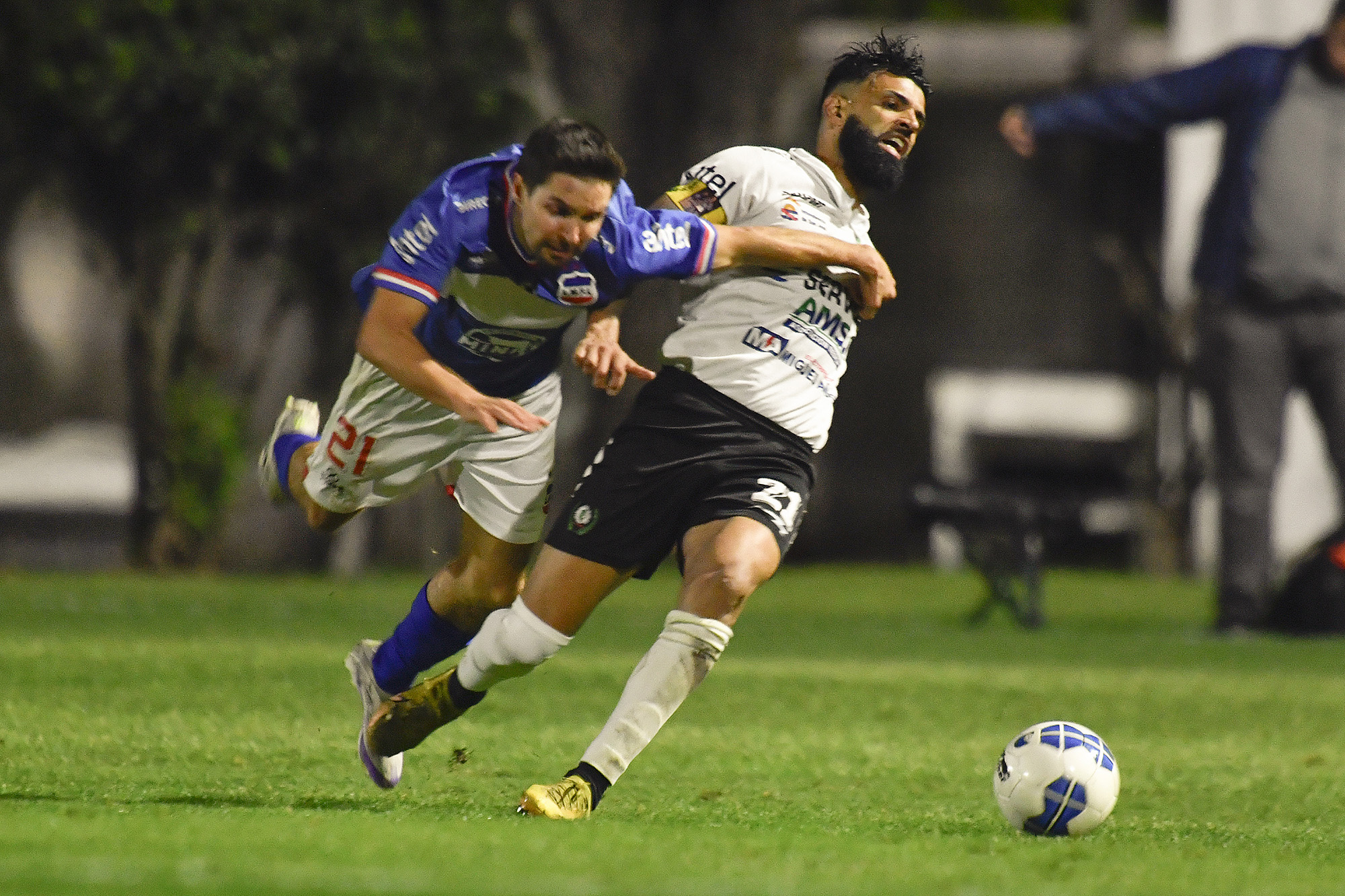 César Martínez, de Lavalleja, Nicolás Rebollo, de San José, durante el partido San José vs Lavalleja, revancha de las finales de la 21ª Copa Nacional de Selecciones, el 12 de abril, en el Estadio Casto Martínez Laguarda, en San José.