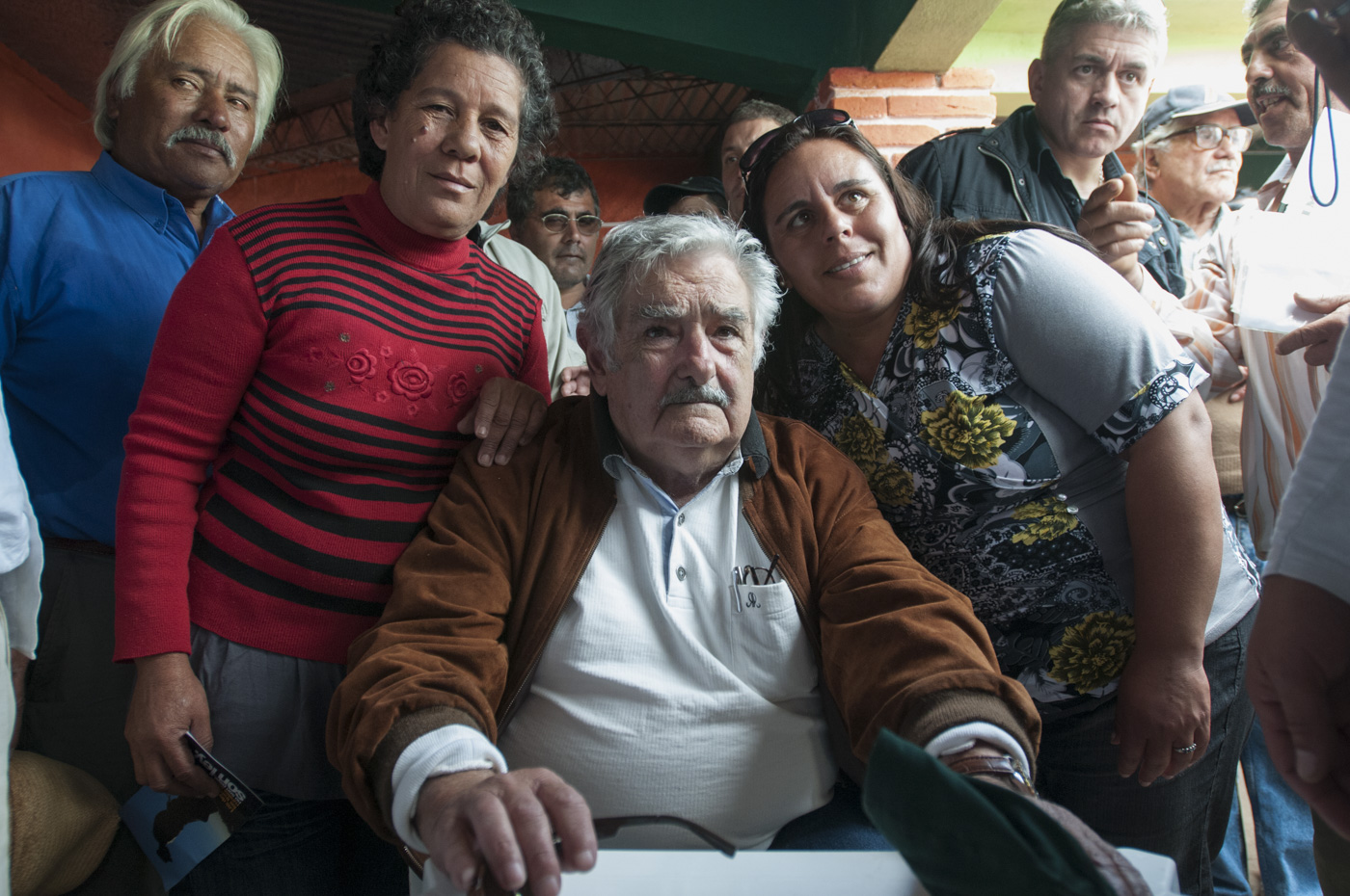 José Mujica durante la reunión que mantuvo con los integrantes del Sindicato de Peones de Estancia, durante la celebración del Día del Trabajador Rural en Punta de Carretera, el 30 de abril de 2013.