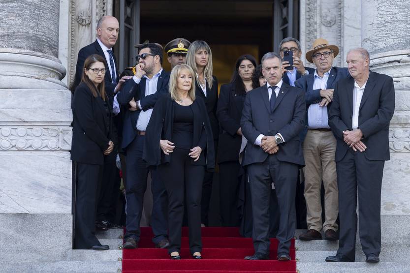 Carolina Cosse y Yamandú Orsi, el 14 de mayo, en el velatorio de José Mujica, en el Palacio Legislativo.