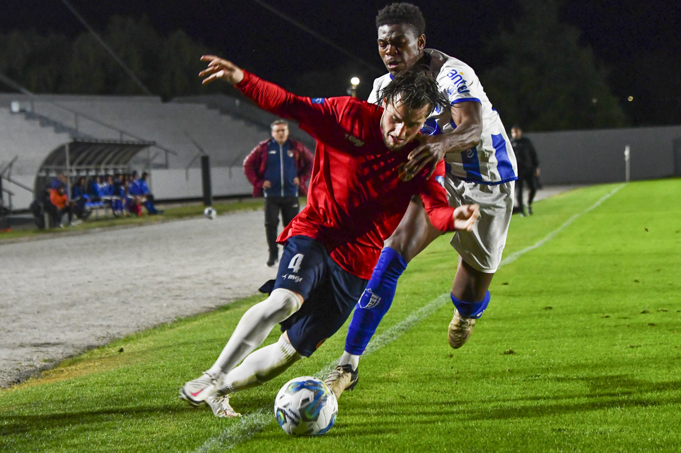Geiner Martínez de Juventud, y Nicolás Mallea, de Deportivo Colonia, durante un partido por la Copa AUF Uruguay en el estadio Alberto Suppici, el 10 de octubre de 2024.