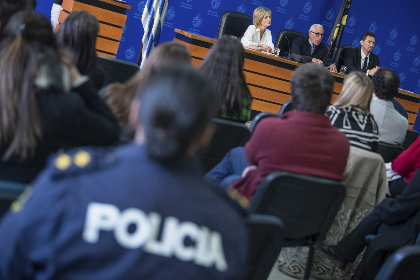 Gabriela Valverde, Carlos Negro y Diego Sanjurjo, durante la presentación del Área Estadística, en el Ministerio de Interior.