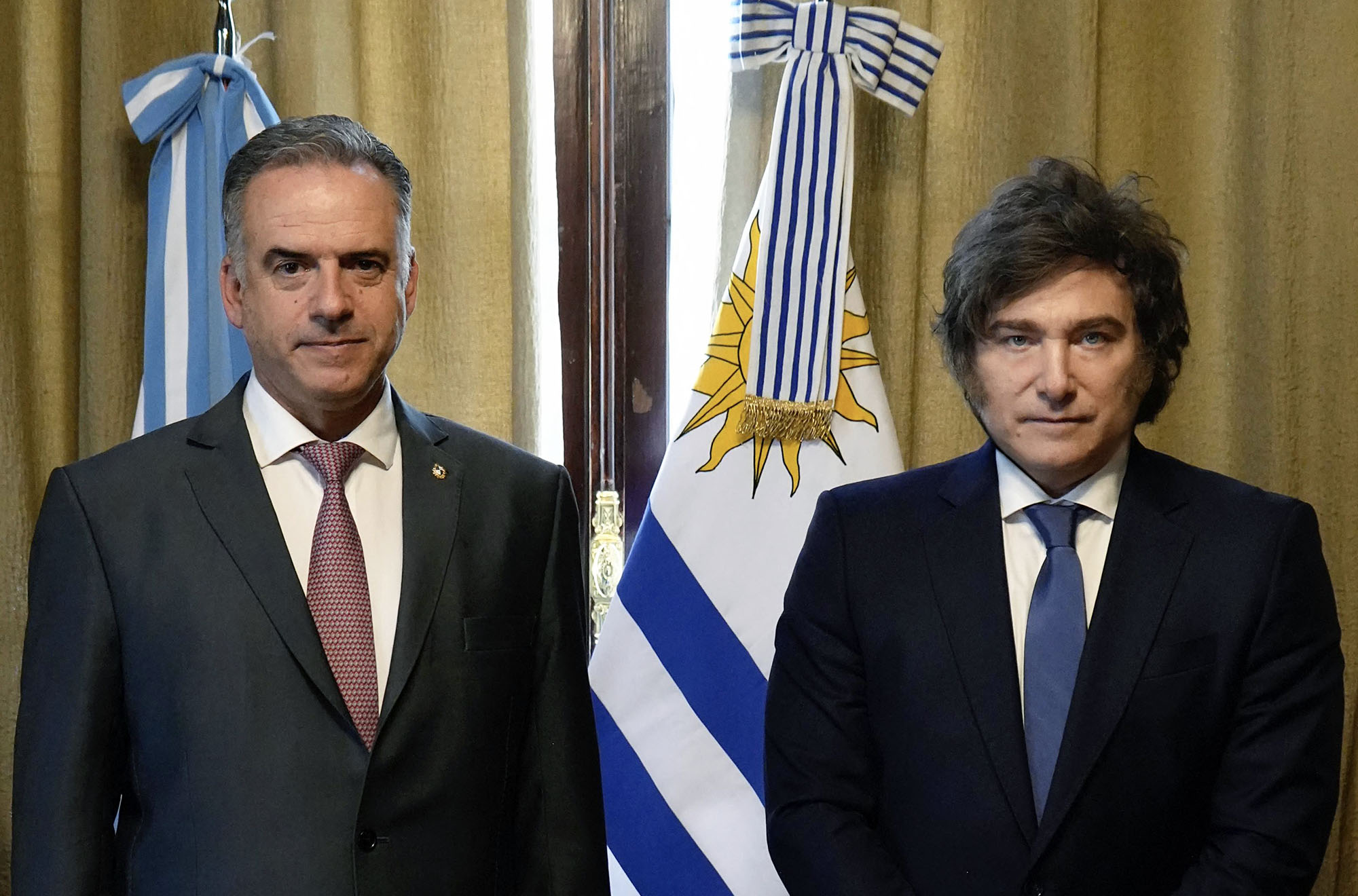 Yamandú Orsi y Javier Milei, durante su primera reunión bilateral, el 3 de julio en Buenos Aires.
