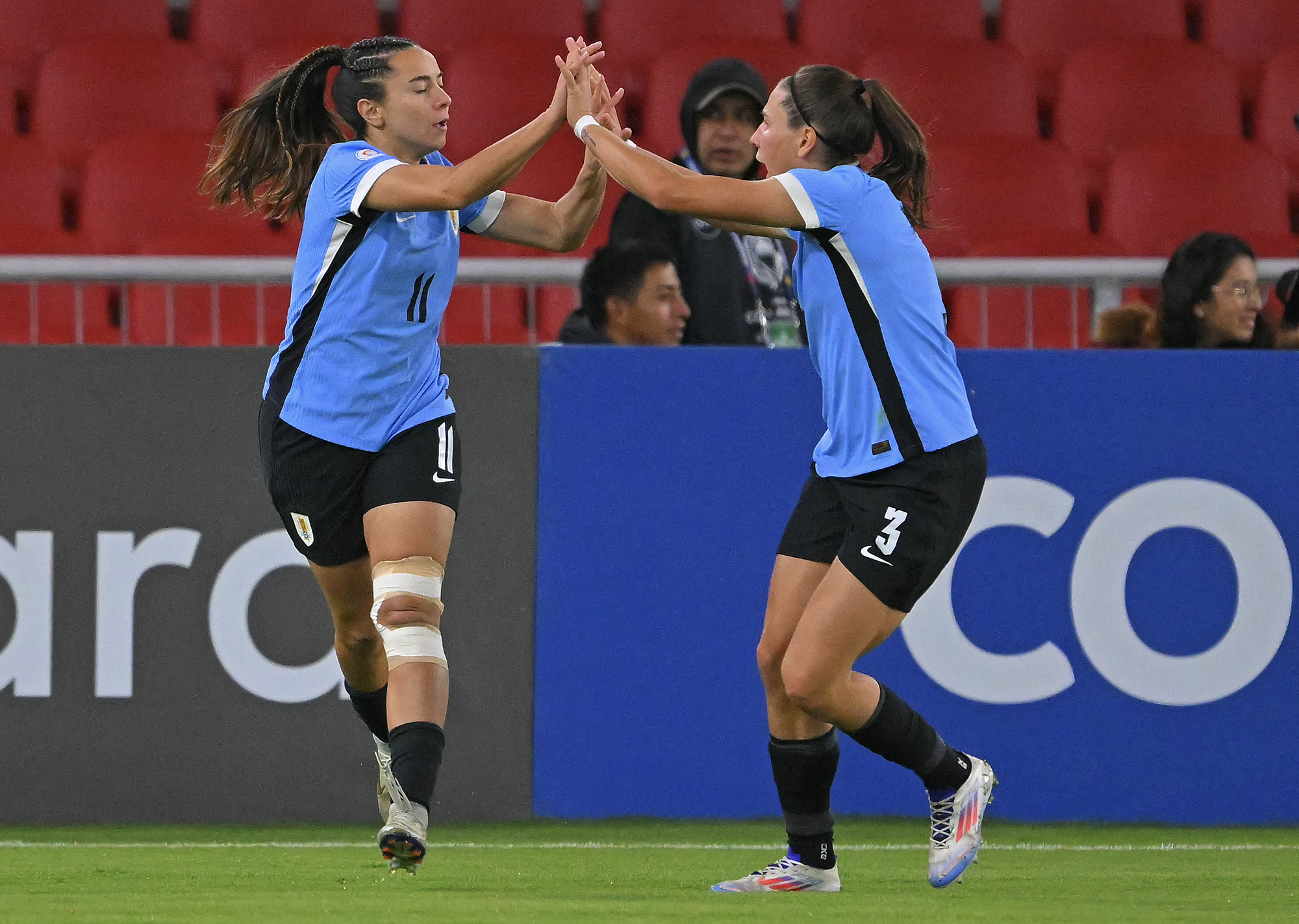 Esperanza Pizarro y Daiana Farías, de Uruguay, durante un partido de semifinal de la Copa América femenina 2025, en el estadio Rodrigo Paz Delgado de Quito (archivo).