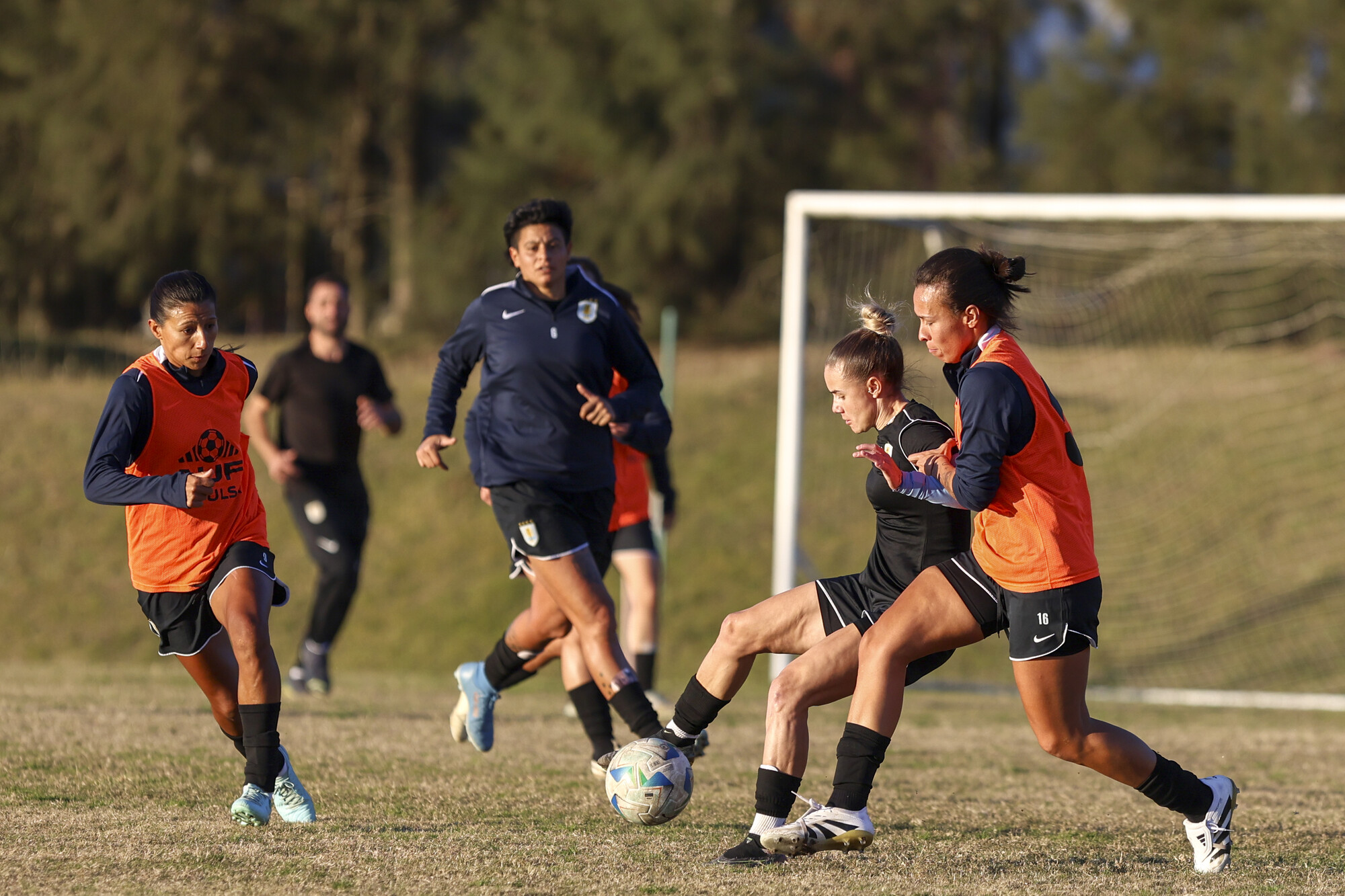 Pamela Gonzalez, Sindy Ramírez, Juliana Viera y Yannel Correa, durante un entrenamiento, en el Complejo Danubio.