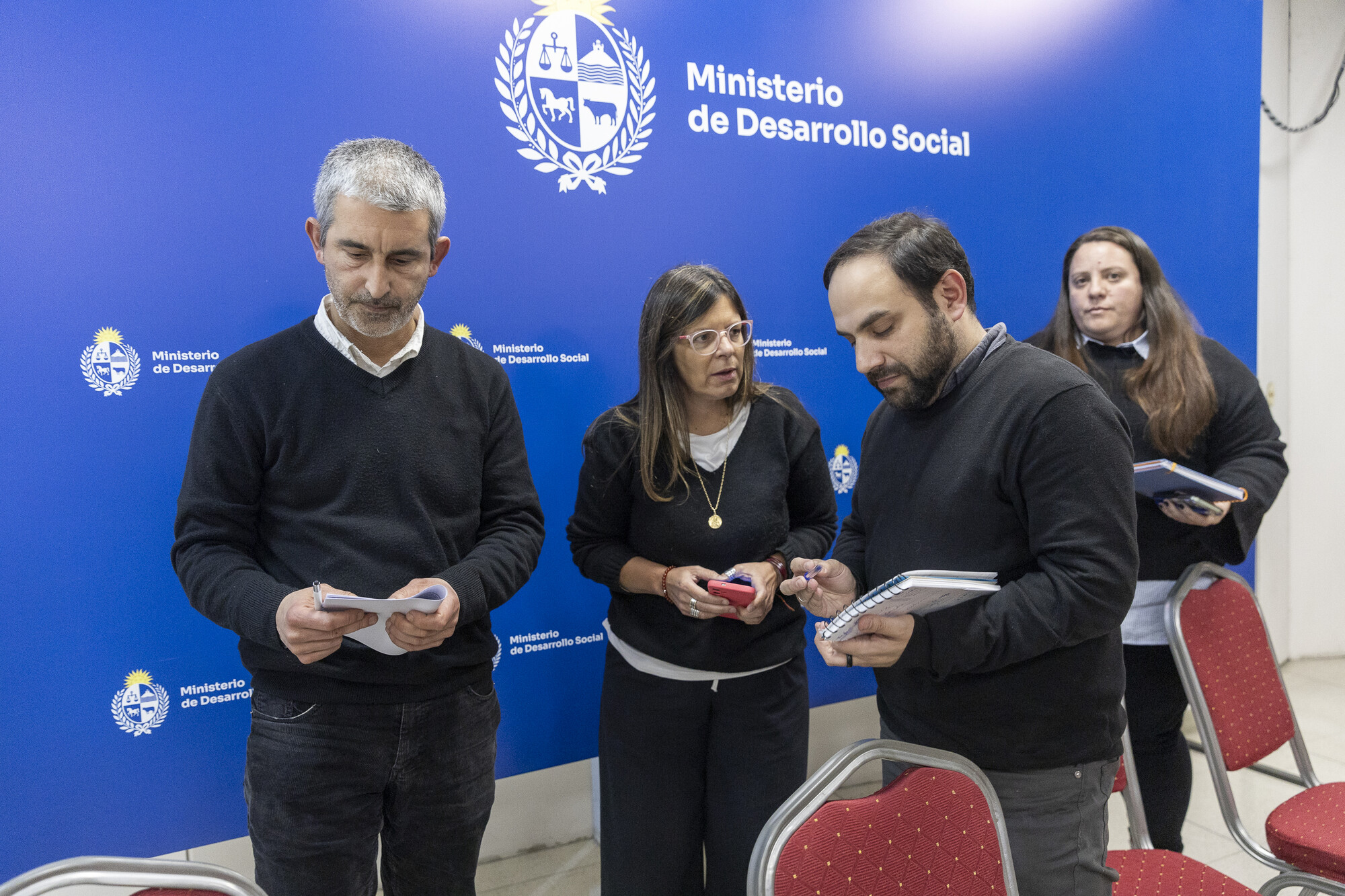Pablo Caggiani, Claudia Romero, Gonzalo Civila y Laura Voituret, el 11 de julio, en conferencia de prensa.