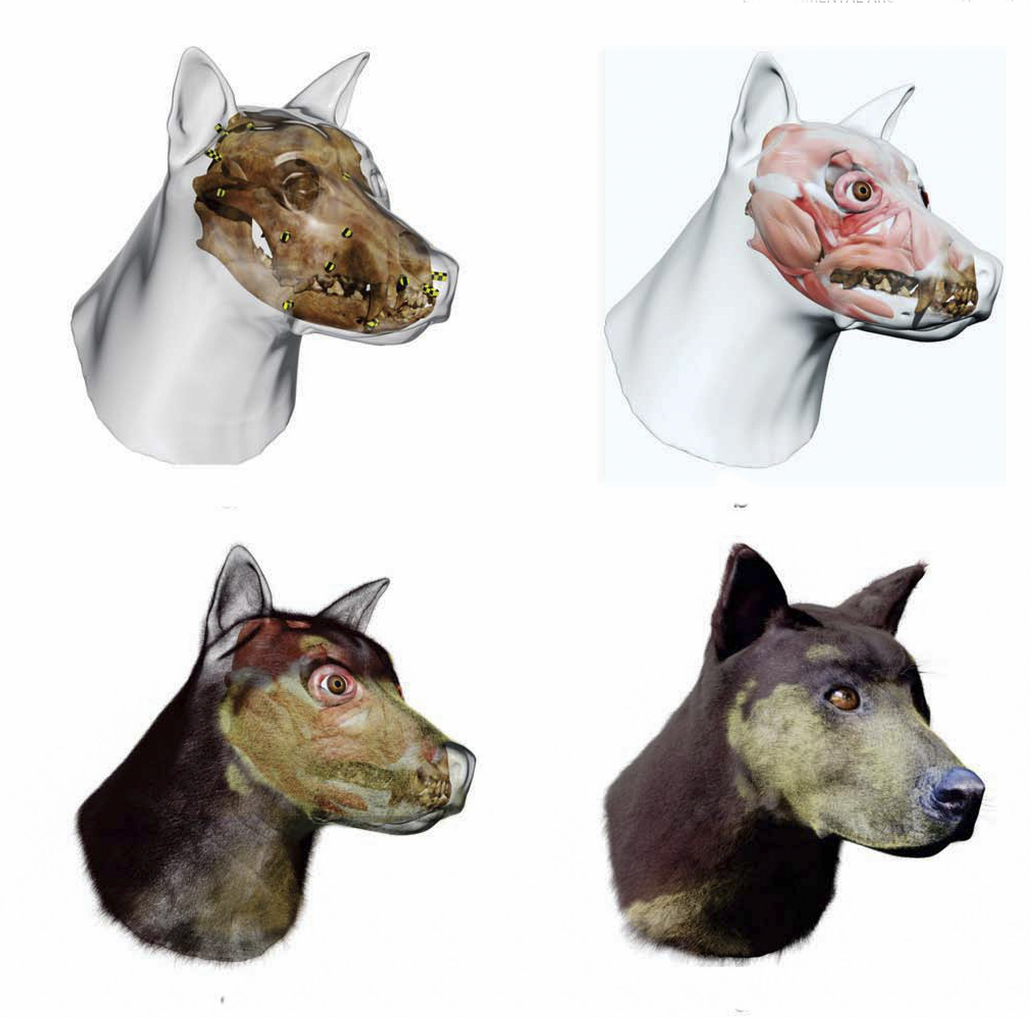 Reconstrución de cómo se vería el perro indígena basada en el cráneo de perro hallado en Cerro Lutz.Laponte et al 2021.