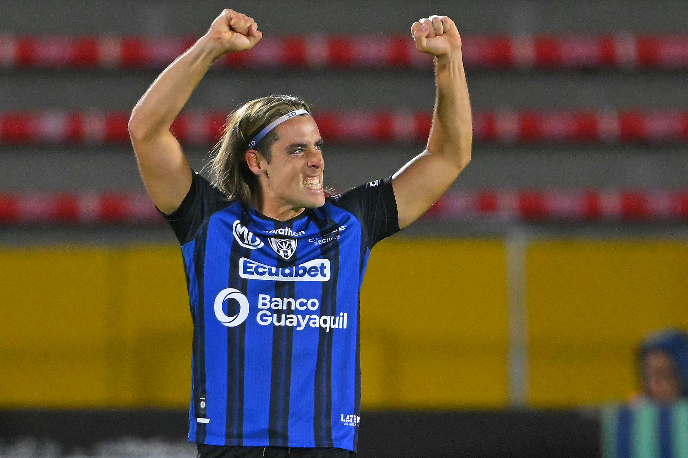 Claudio Spinelli, de Independiente del Valle, celebra su gol a Vasco da Gama, el 15 de julio, en el estadio Olímpico Atahualpa de Quito.