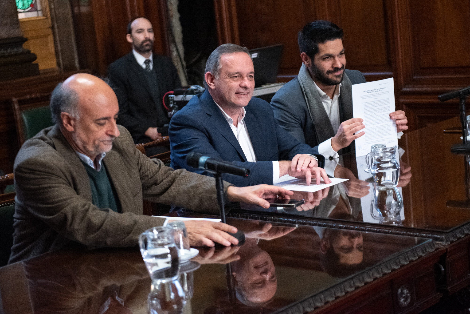 Pablo Mieres, Álvaro Delgado y Andrés Ojeda, en el Parlamento (archivo, 2024).