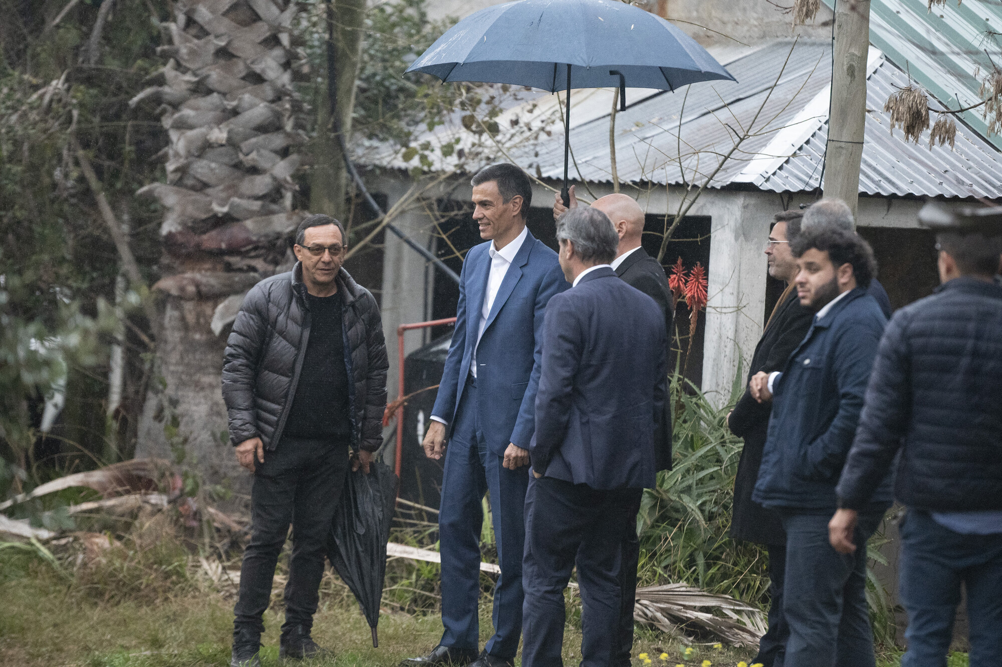 Pedro Sánchez (cen.), el 22 de julio, en la chacra de Lucía Topolansky.