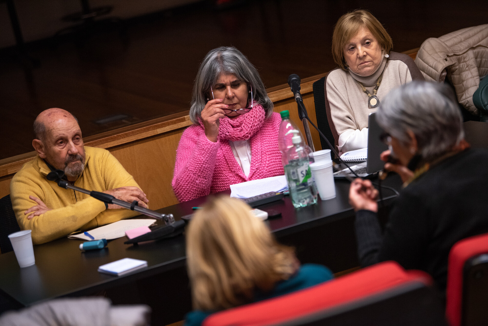 Mauricio Langón, Nirian Carbajal y Adela Vaz, el 23 de Julio, en el Salón de Acto de la Facultad de Psicología