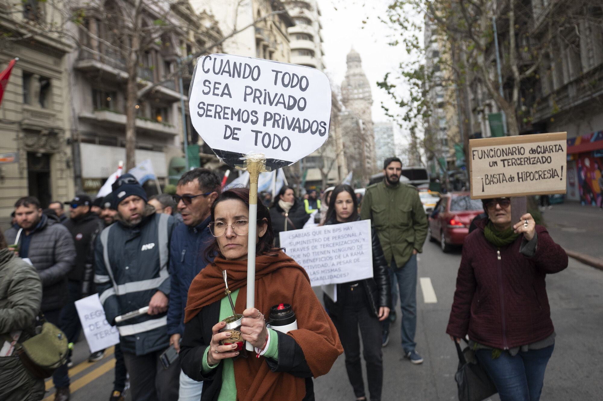Movilización de sindicatos de empresas públicas, el 23 de julio, en el centro de Montevideo.