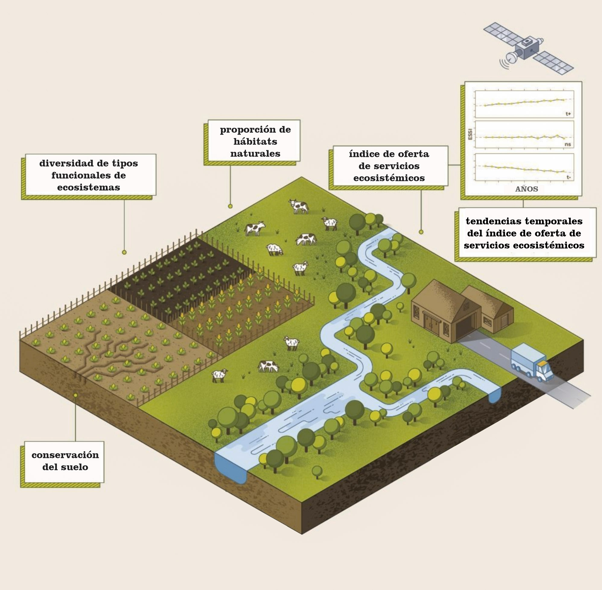 Esquema de los cinco indicadores de desempeño ambiental aplicados. Adaptado de Paruelo _et al_, 2024.