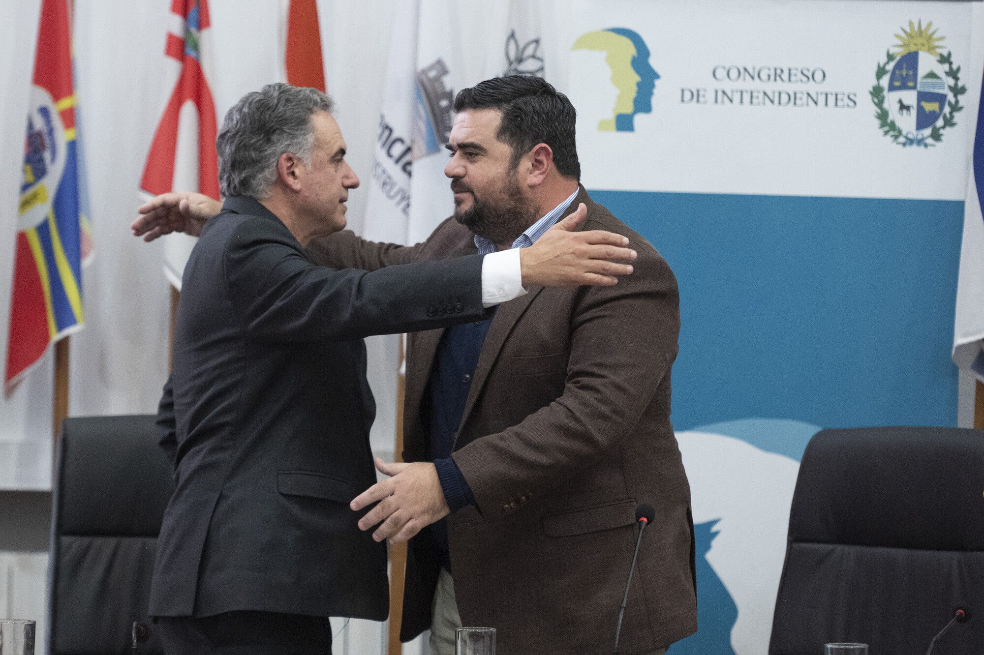 Yamandú Orsi y Nicolás Olivera, el 30 de julio, en el Congreso de Intendentes.