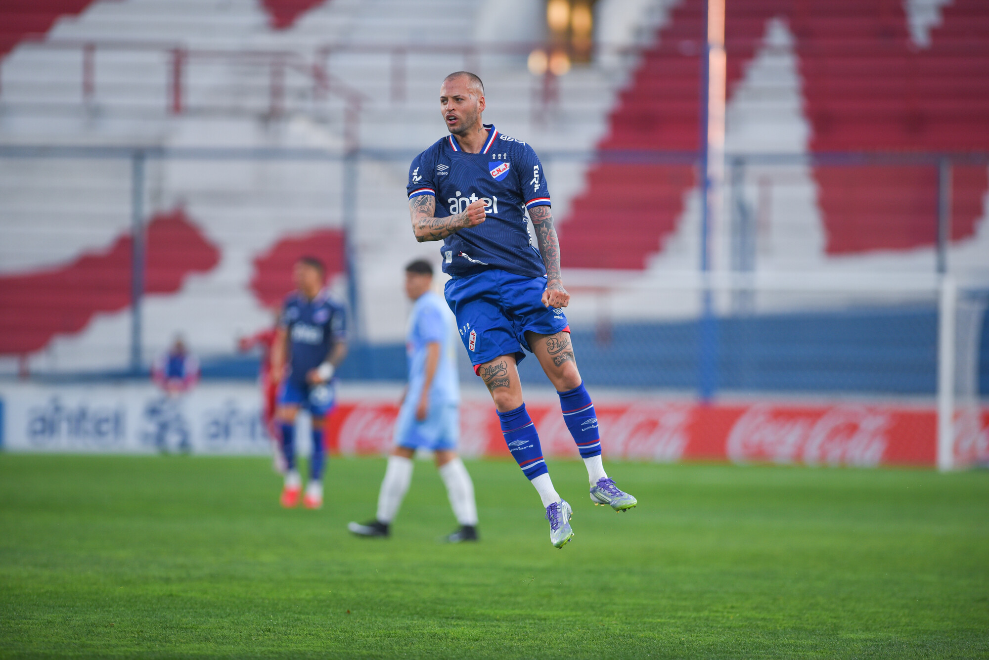 Nicolás López tras convertir el primer tanto del encuentro entre Nacional y Montevideo City Torque por la primera fecha del Torneo Clausura, el 2 de agosto, en el Gran Parque Central.