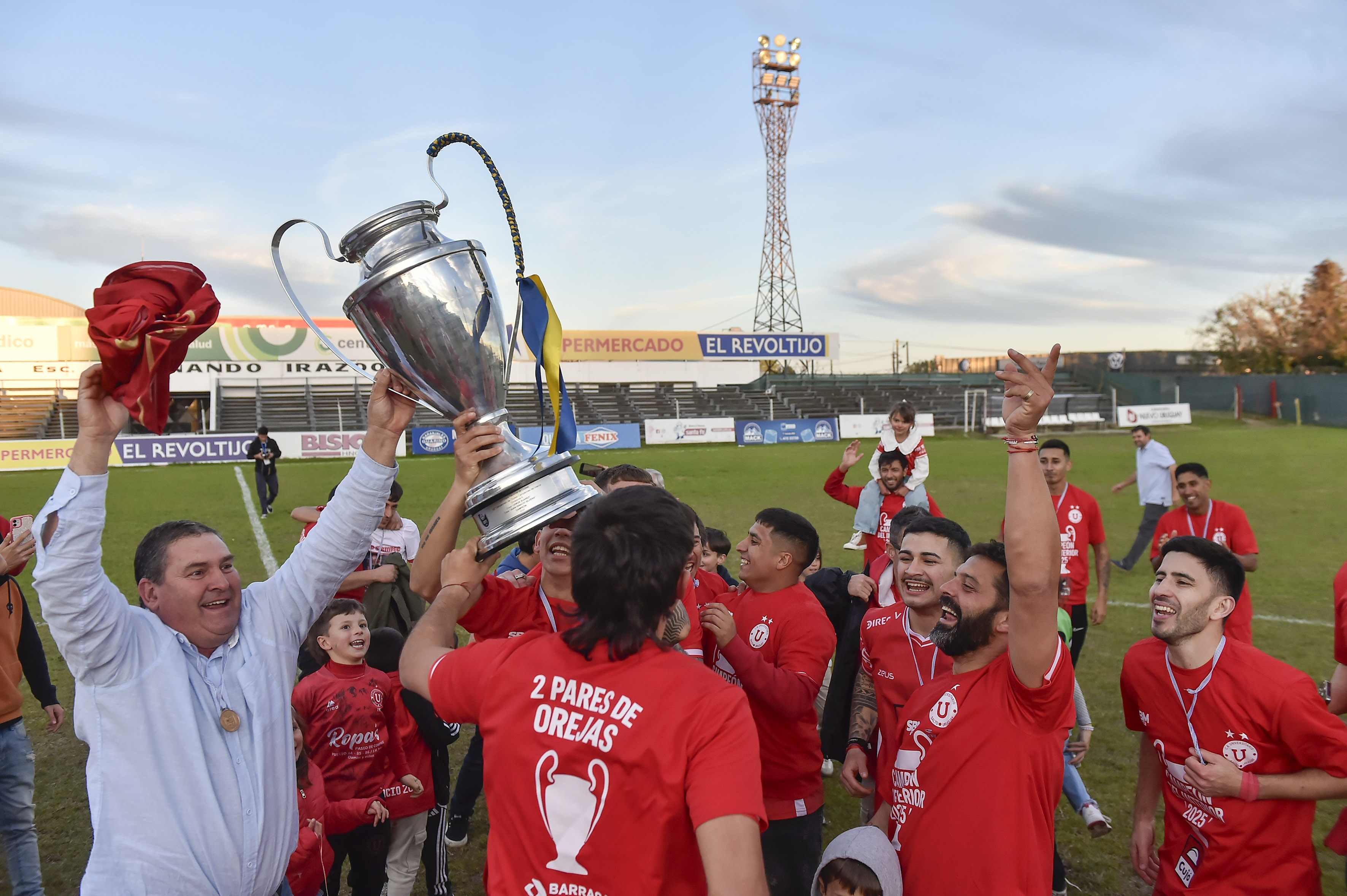 Universitario de Salto, campeón de la 21ª Copa Nacional de Clubes, después de ganarle a Río Negro de San José, el 3 de agosto, en el estadio Ernesto Dickinson, en Salto.
