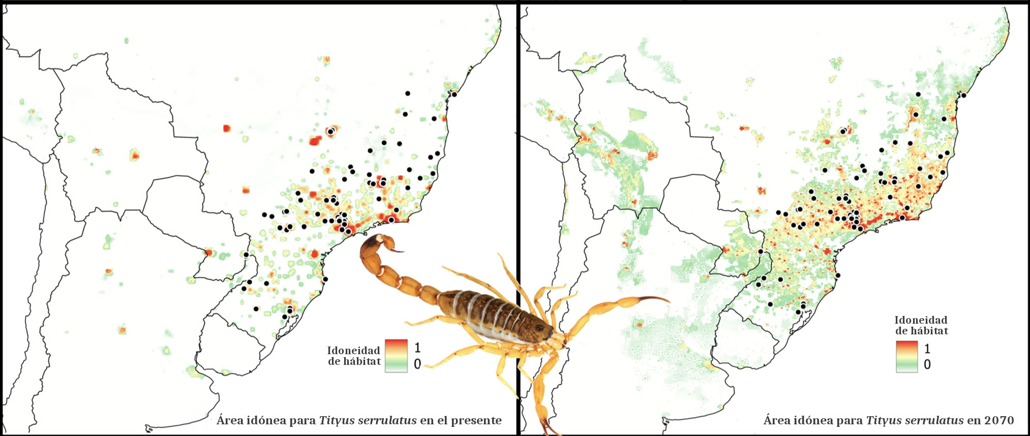 Mapa predictivo de expansión de _Tityus serrulatus_. Tomado de Alexis Barrios.