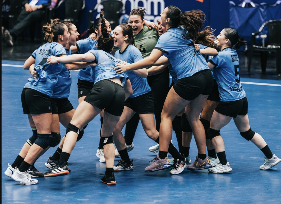El equipo de handball femenino tras ganarle a Chile, el sábado, en Asunción.