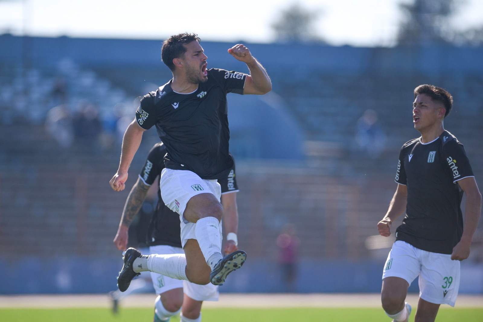 Guillermo Cotugno, de Racing, celebra su gol ante Cerro, el 10 de julio, en el estadio Luis Tróccoli.
