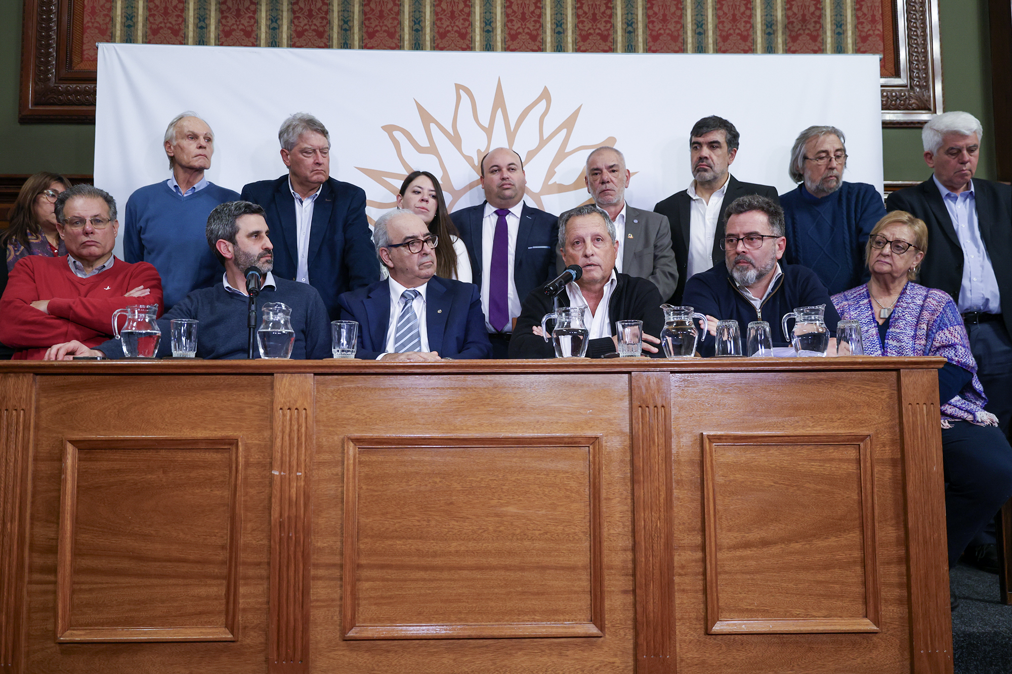 Conferencia de prensa de la bancada del Frente Amplio, el 13 de agosto, en un cuarto intermedio de la interpelación a Alfredo Fratti, en el Palacio Legislativo.