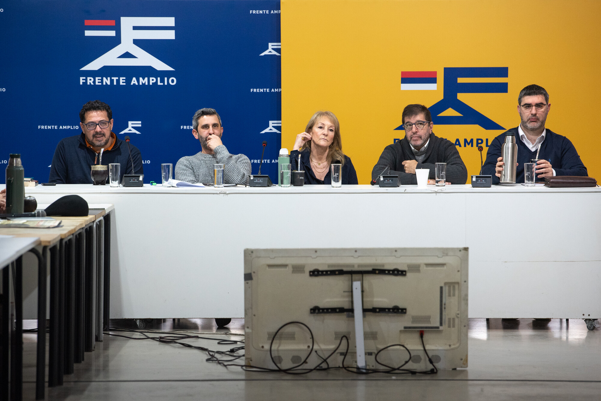 Alejandro Sánchez, Daniel Caggiani, Carolina Cosse, Fernando Pereira y Mariano Tucci, durante el encuentro de la Agrupación Nacional de Gobierno, el 16 de agosto, en La Huella de Seregni.