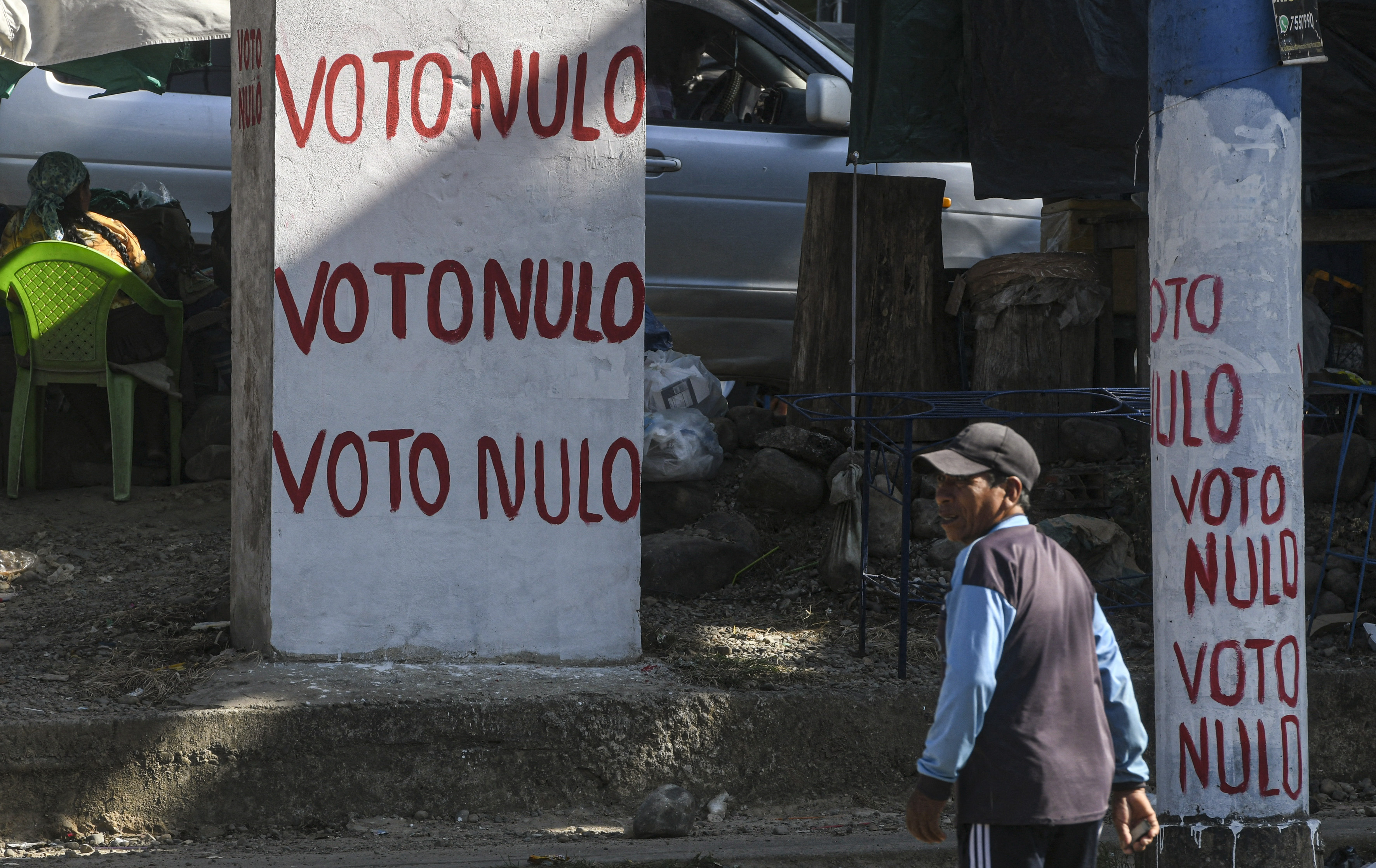 Mural a favor de la campaña "Voto Nulo", el 16 de agosto, en Cochabamba, Bolivia.