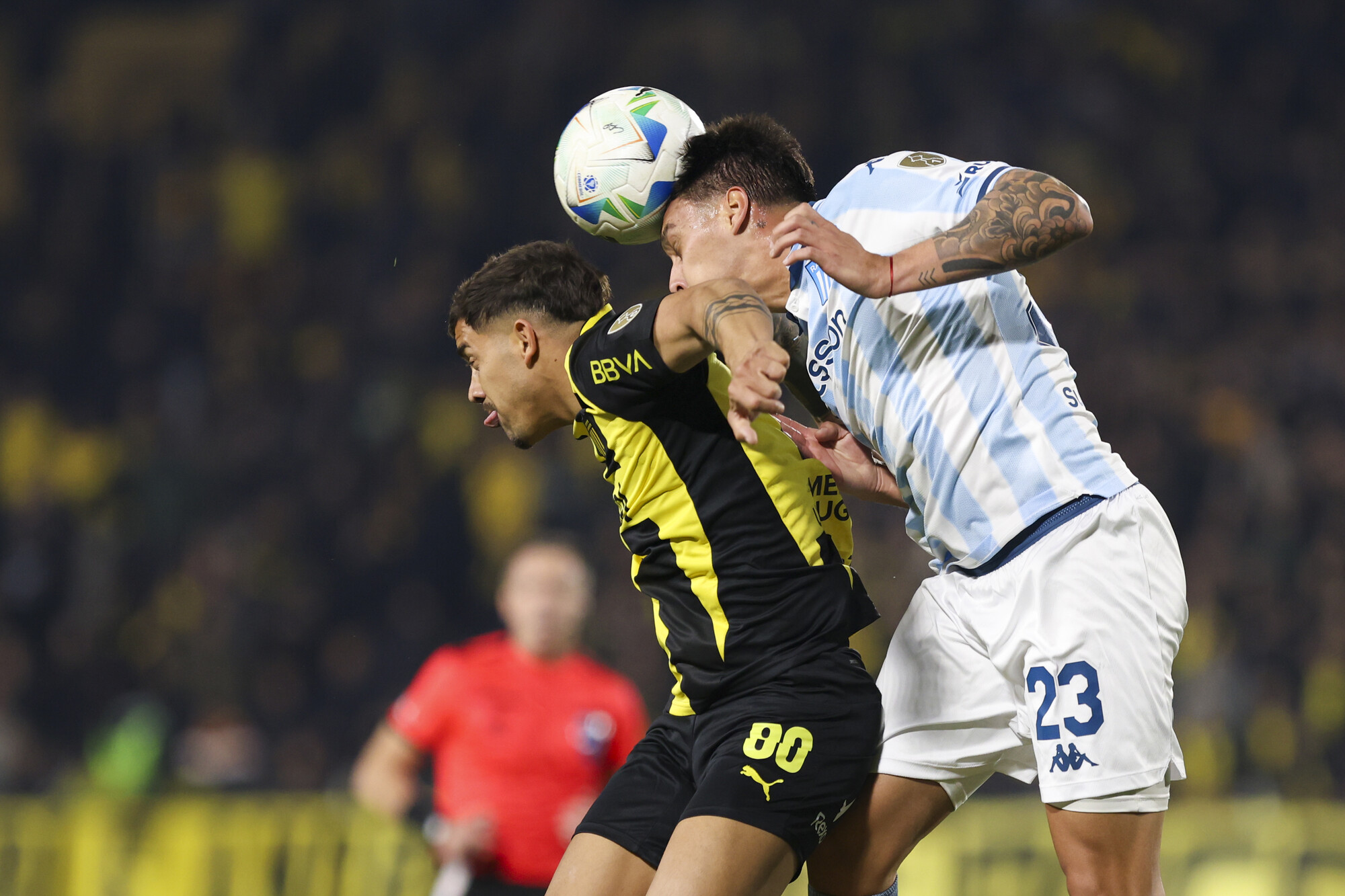 David Terans, de Peñarol, y Nazareno Colombo, de Racing, el 12 de agosto, en el estadio Campeón del Siglo.