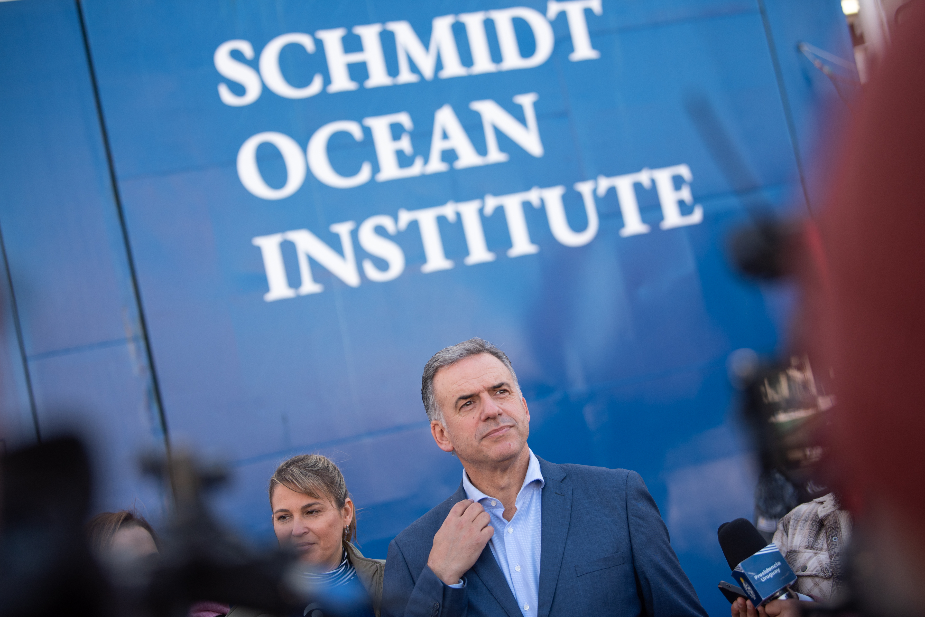 Yamandú Orsi, el 21 de agosto, en el puerto de Montevideo.