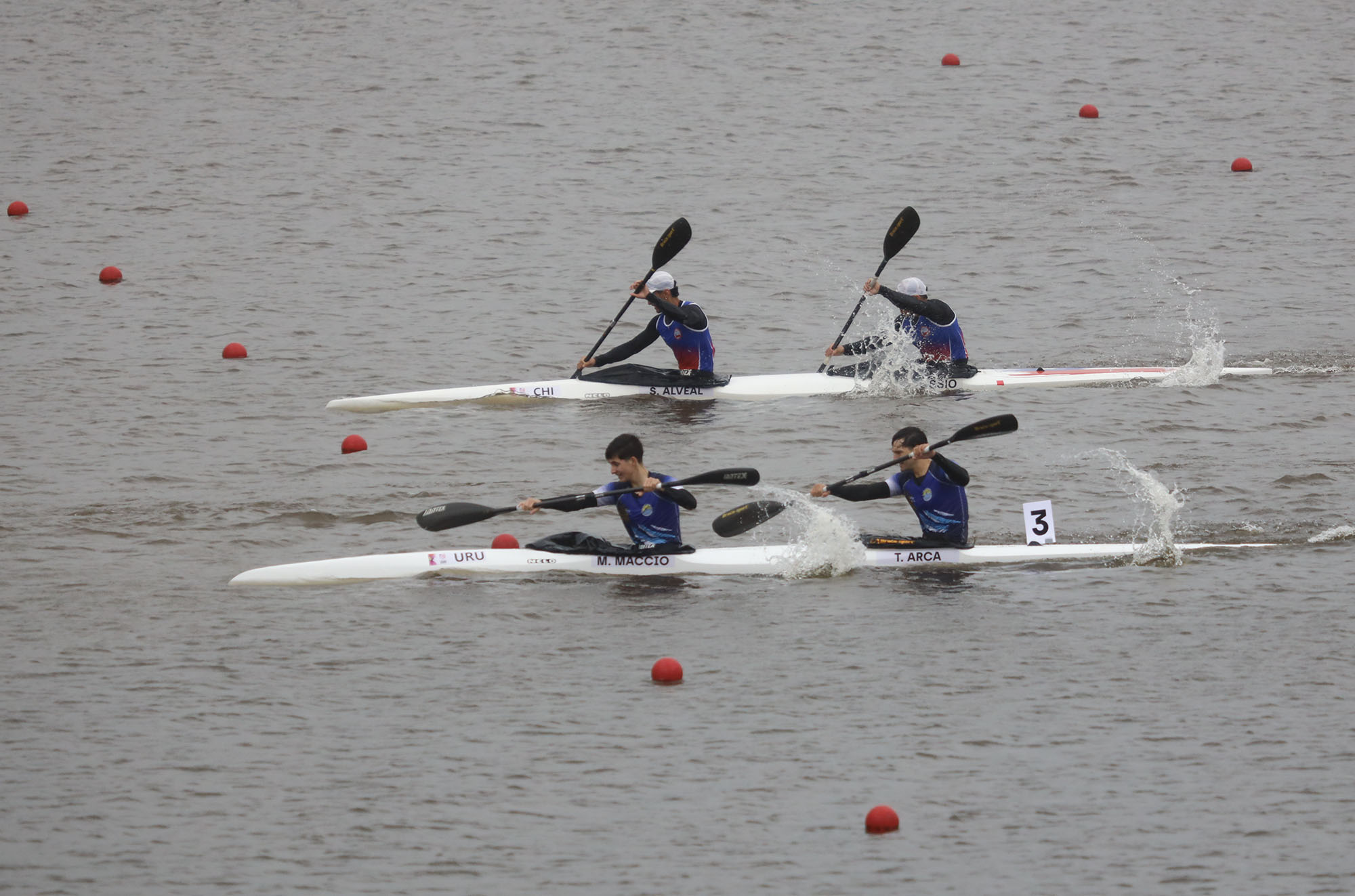 Tadeo Arca y Matías Maccio, el 23 de agosto, durante la prueba de kayak doble 500 metros.