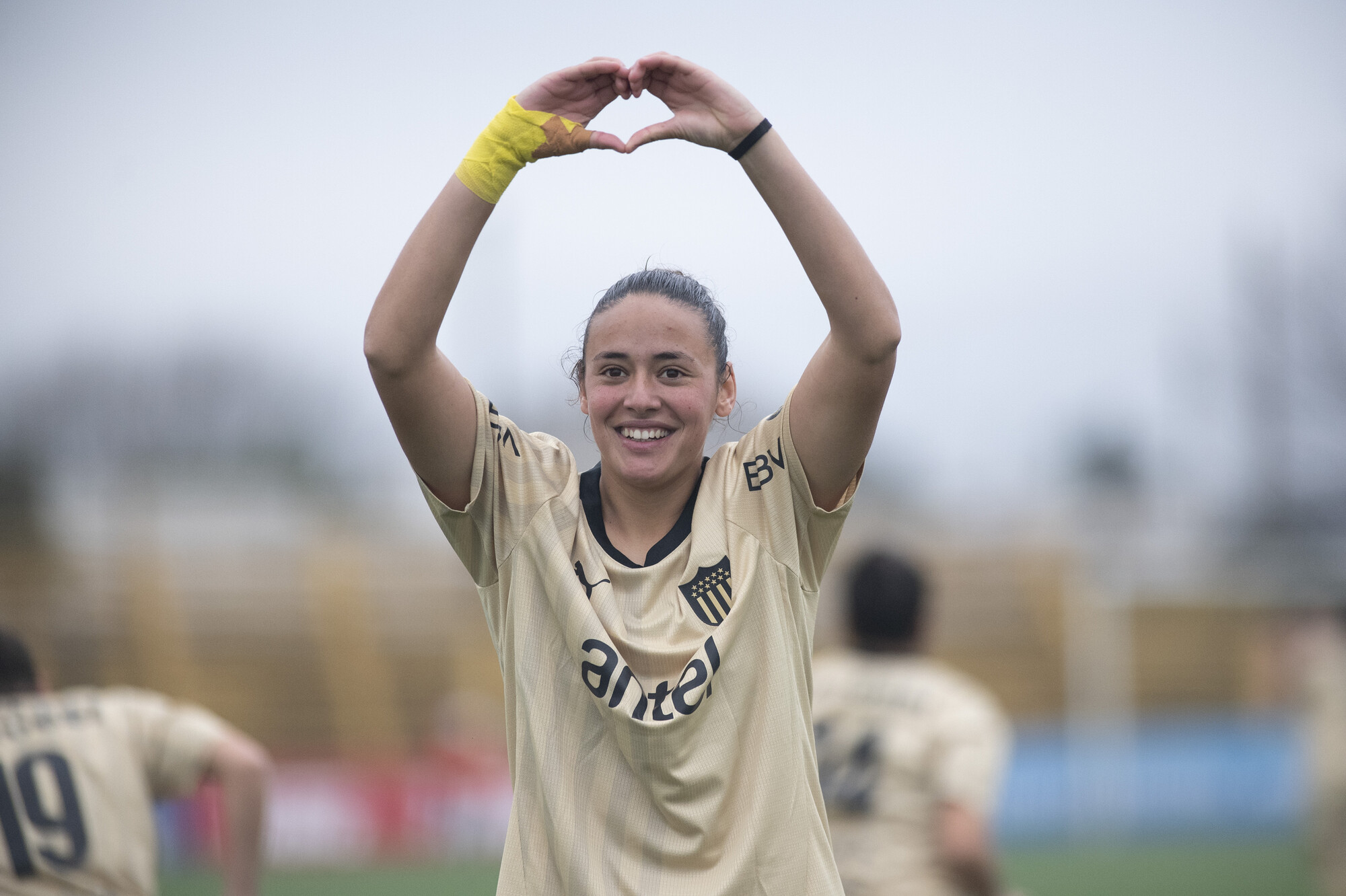 Tatiana Magallanes, de Peñarol, tras converir el gol a Liverpool, el 17 de agosto en el estadio Cr. José Pedro Damiani