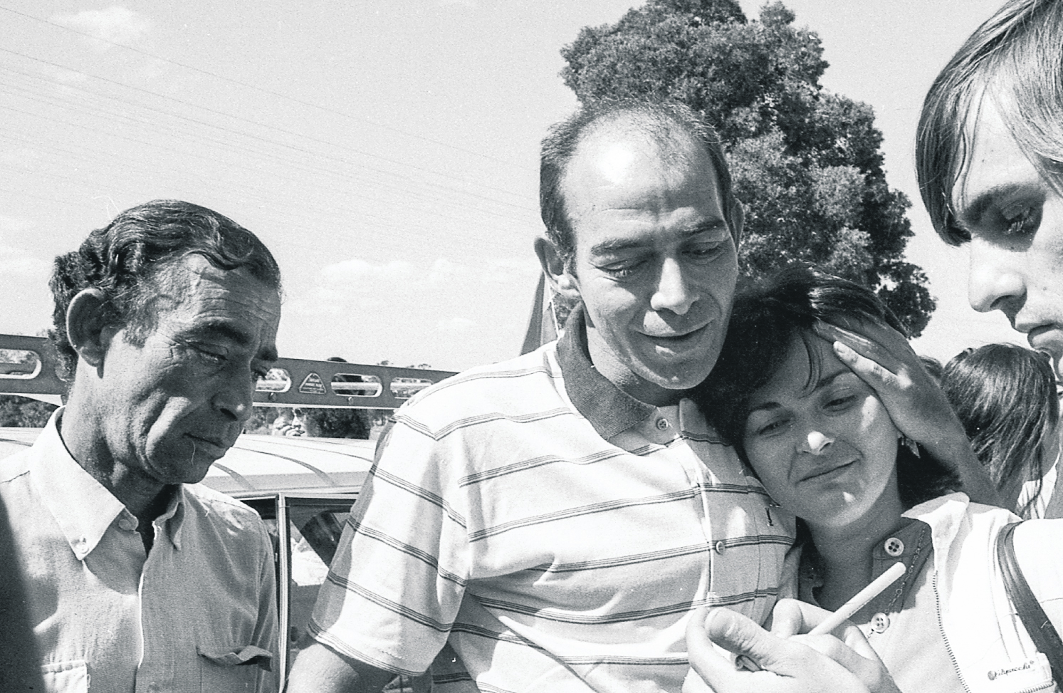 Jaime Lev, León Lev y Felicia Knaster, el 25 de febrero de 1985, en la salida del Penal de Libertad.