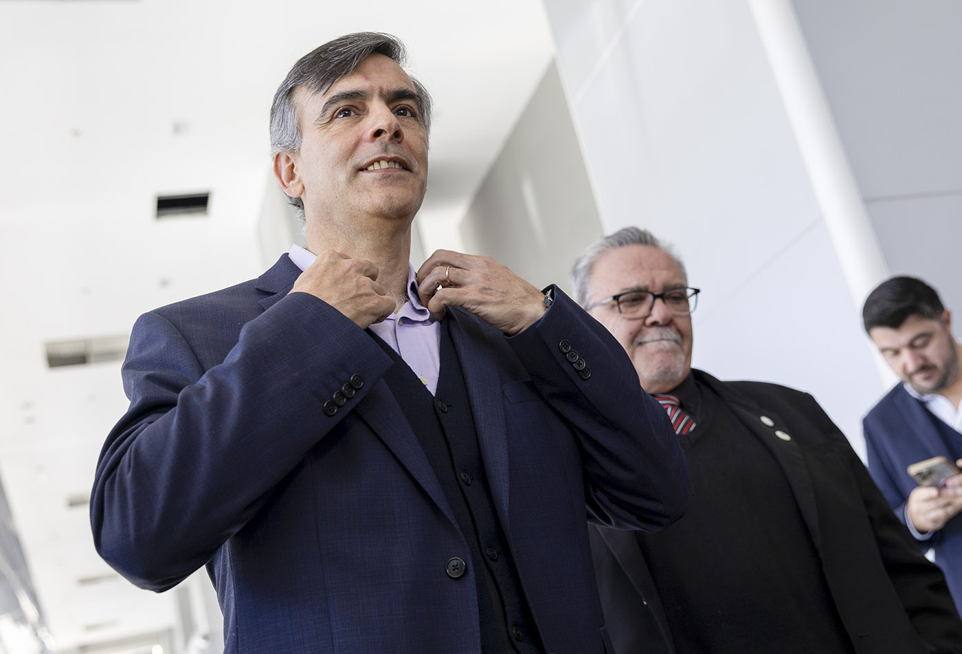 Leonardo Loureiro y Carlos Delfino luego de la reunión con el presidente Yamandú Orsi en Torre Ejecutiva.