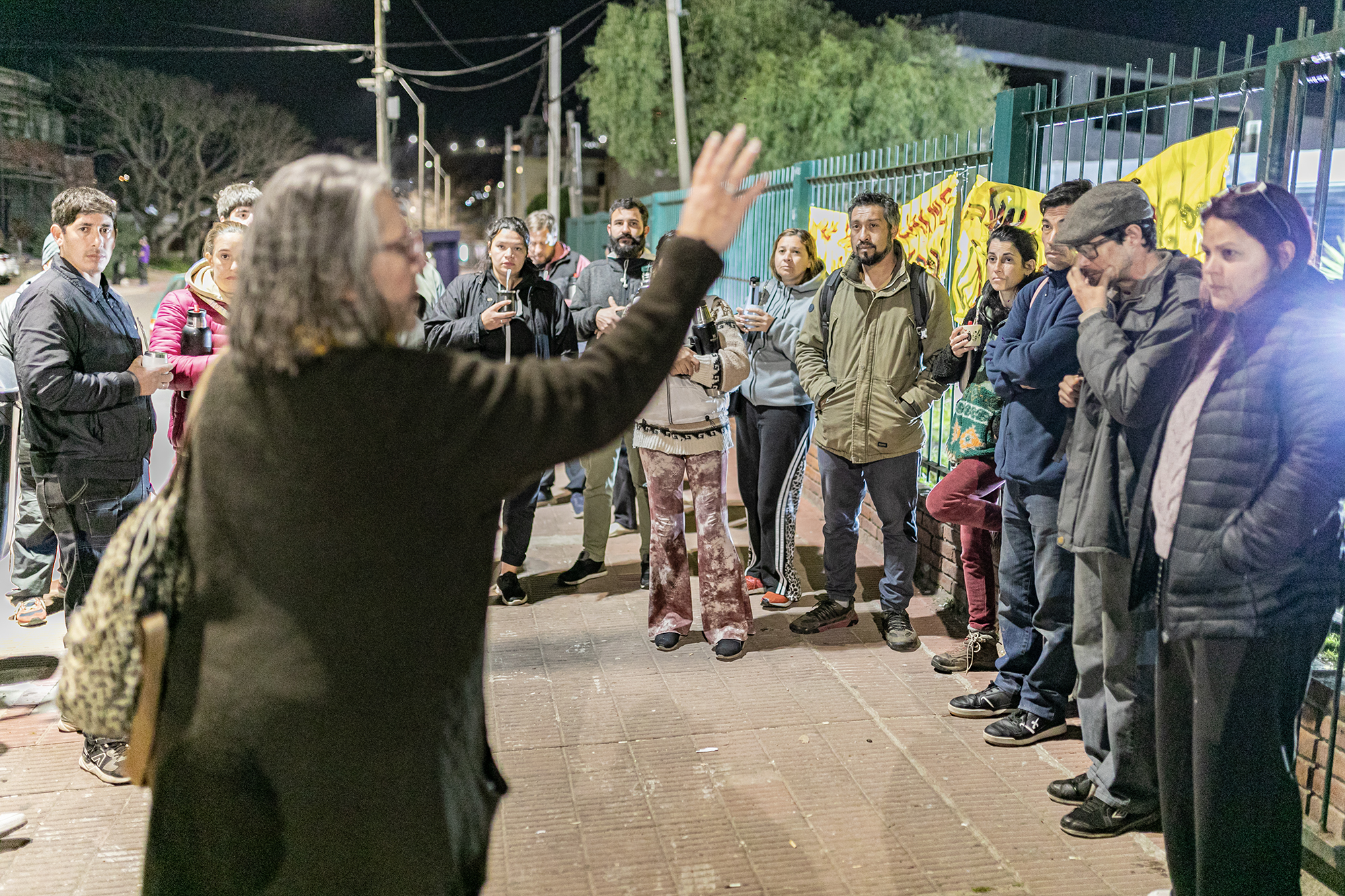 Durante la asamblea de padres, el 28 de agosto, frente al liceo de Piriápolis.