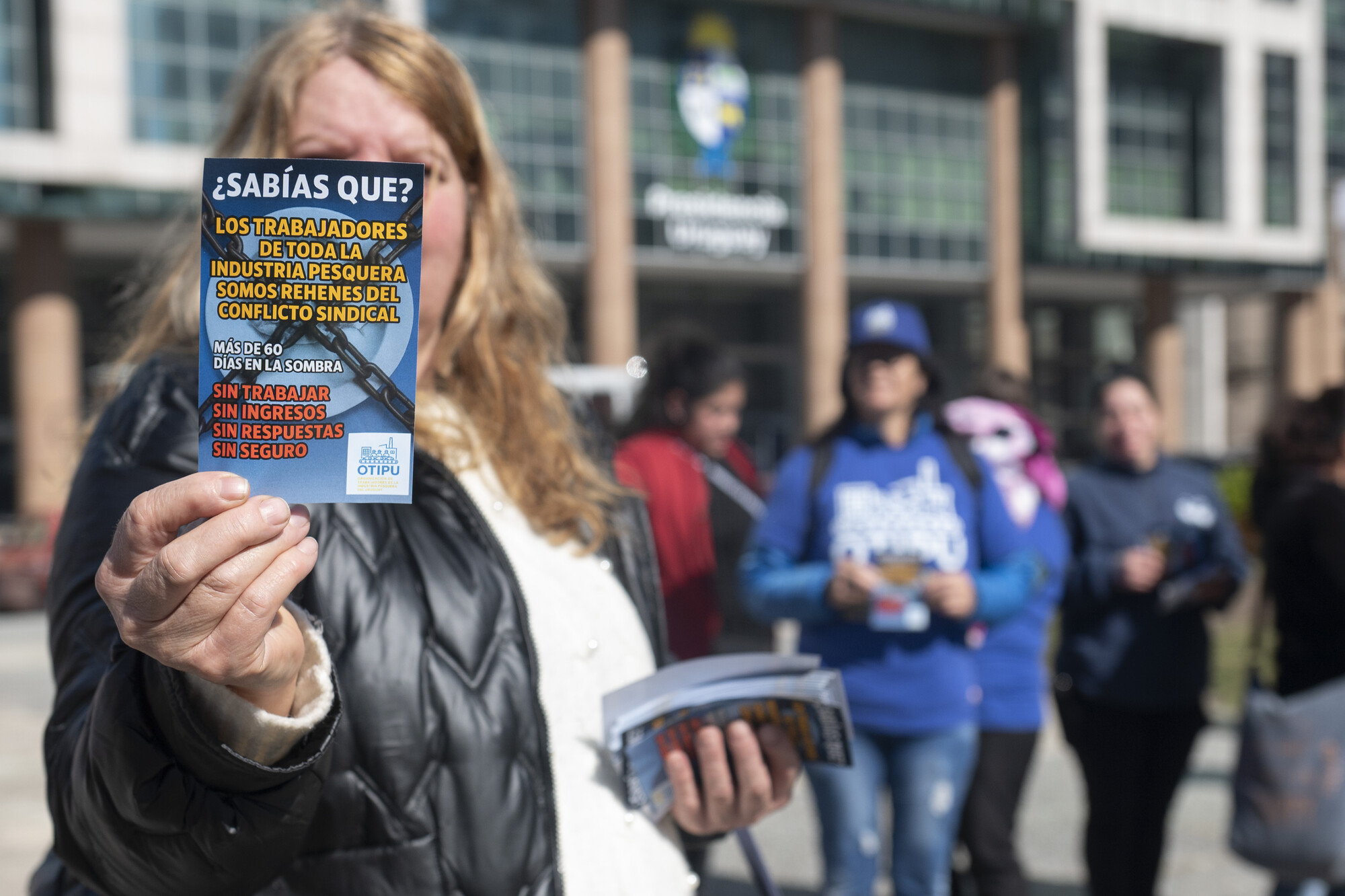 Movilización de la Organización de Trabajadores de la Industria Pesquera del Uruguay frente a Torre Ejecutiva (archivo, agosto de 2025).