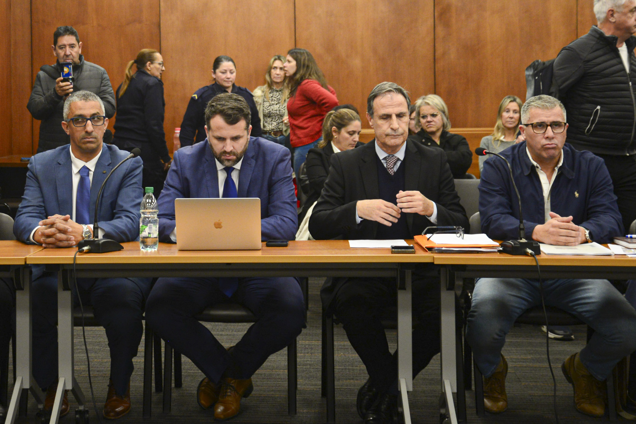 José Luis Sánchez, Fernando Posada, Alvaro Garcé y Darwin Correa, el 3 de setiembre, en el Centro de Justicia, en Maldonado.