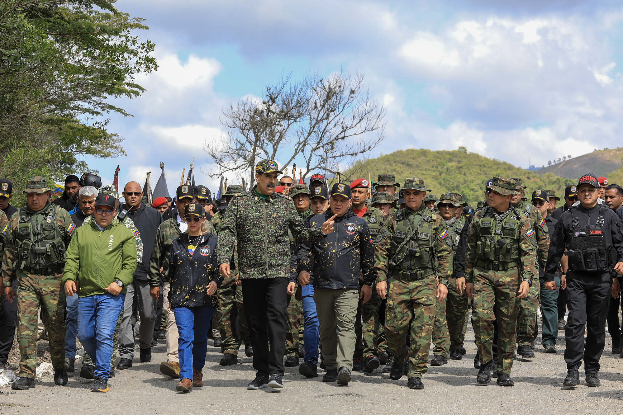 Nicolás Maduro (CI), junto a Diosdado Cabello, durante ejercicios militares en un campo de entrenamiento, el 28 de agosto, en Caracas.