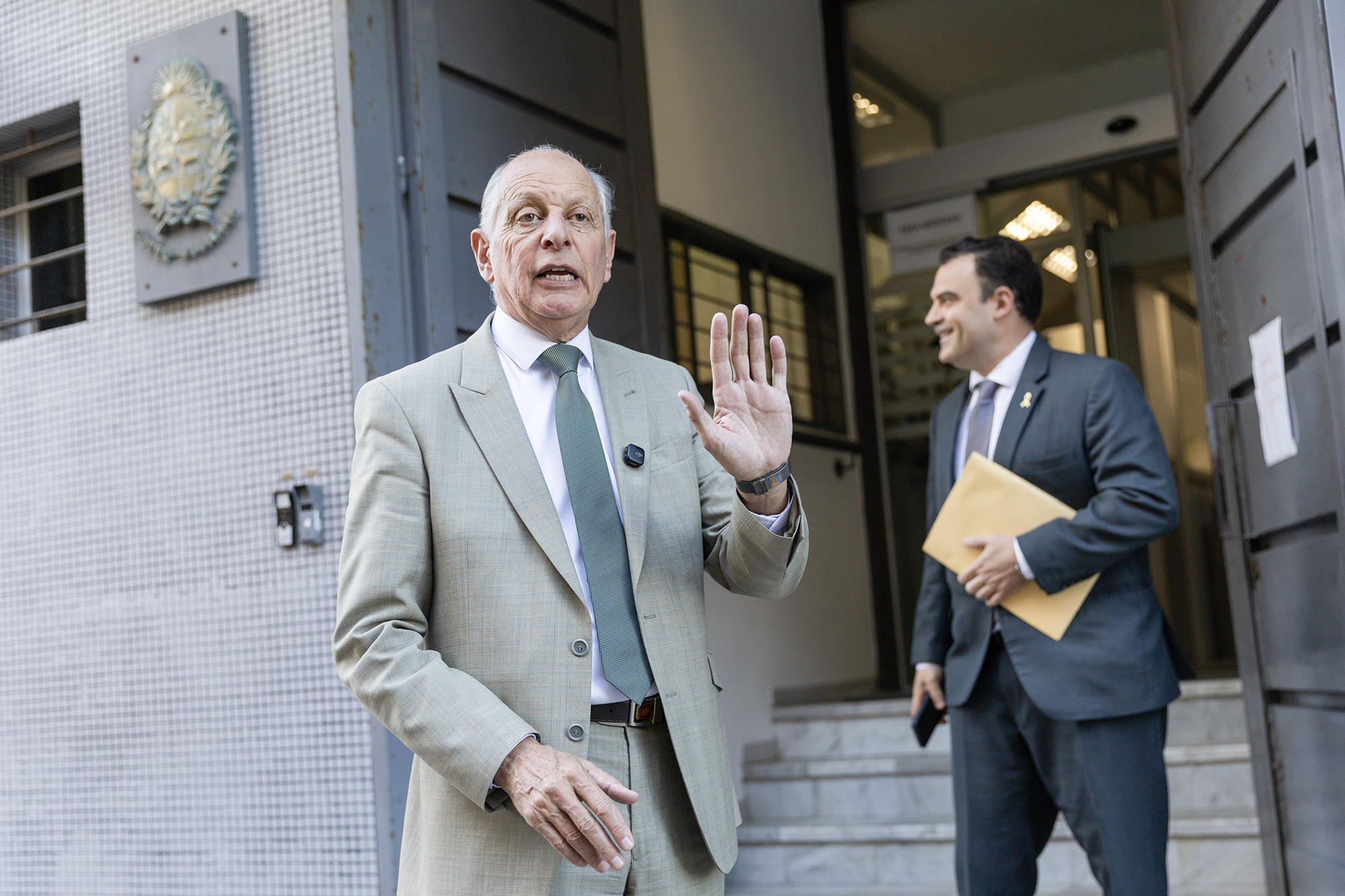 Gustavo Salle y Juan Martín Jorge, el 11 de setiembre, en el juzgado de la calle Juan Carlos Gómez, en Montevideo.