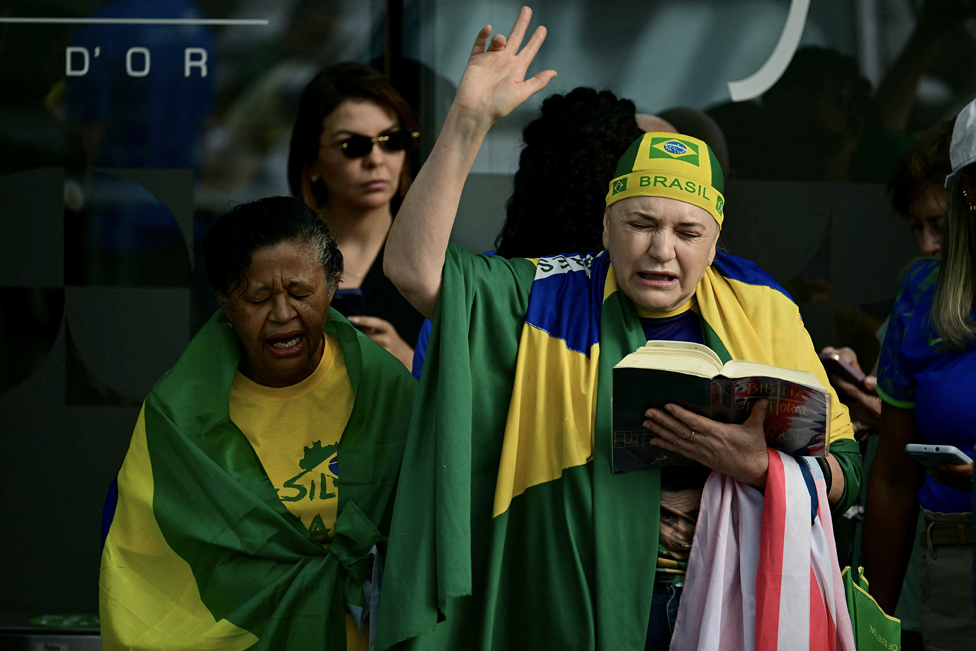 Partidarios del expresidente brasileño Jair Bolsonaro, el 14 de setiembre, frente al hospital donde se somete a exámenes médicos bajo arresto domiciliario.
