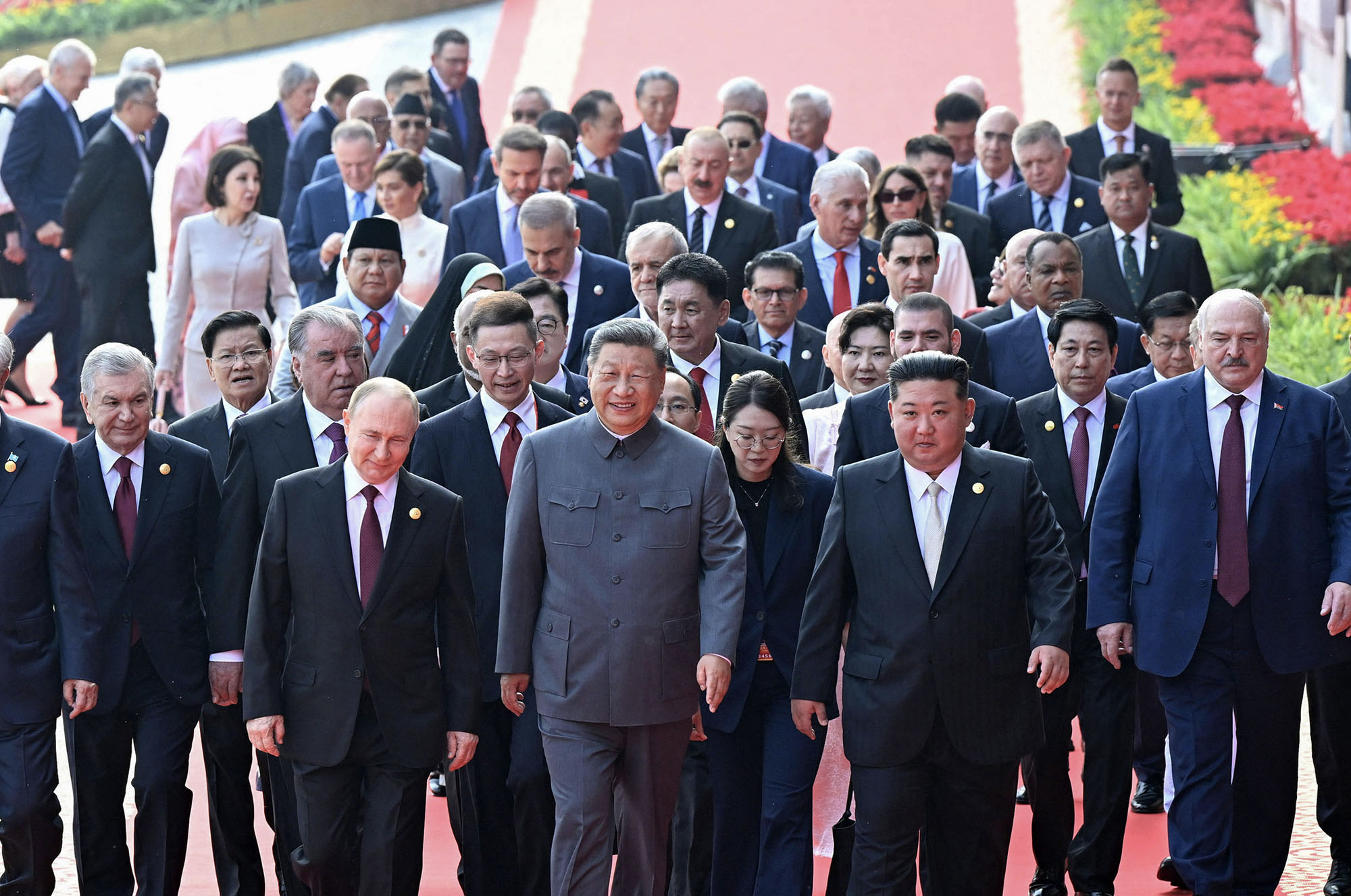 Vladimir Putin, Xi Jinping y Kim Jong-un, el 3 de setiembre en Pekín, China.
