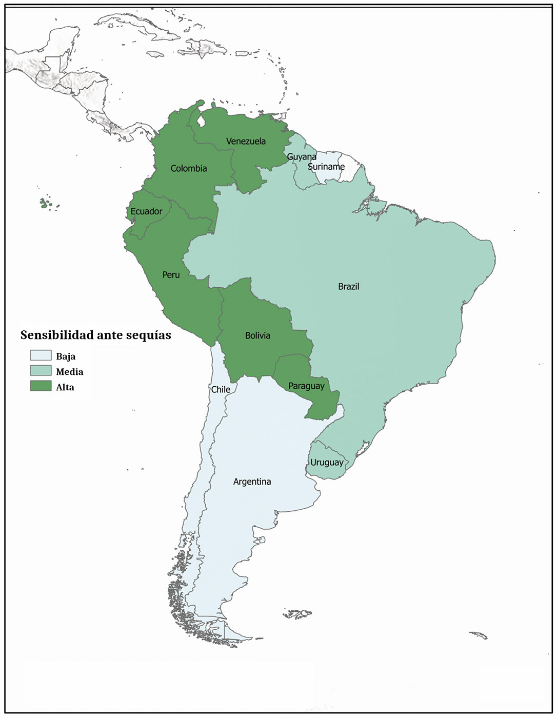 Mapa sensibilidad a sequías. Tomado de Silverman et al 2025