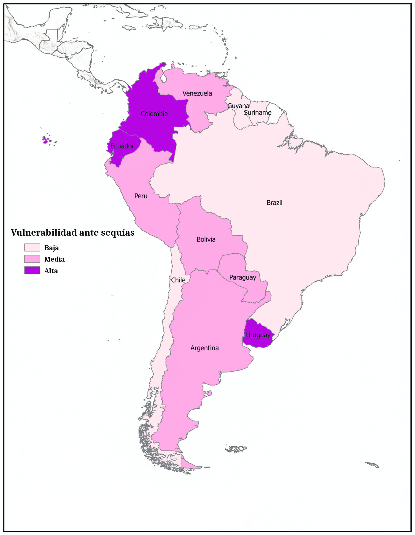 Mapa vulnerabilidad a sequías. Tomado de Silverman et al 2025