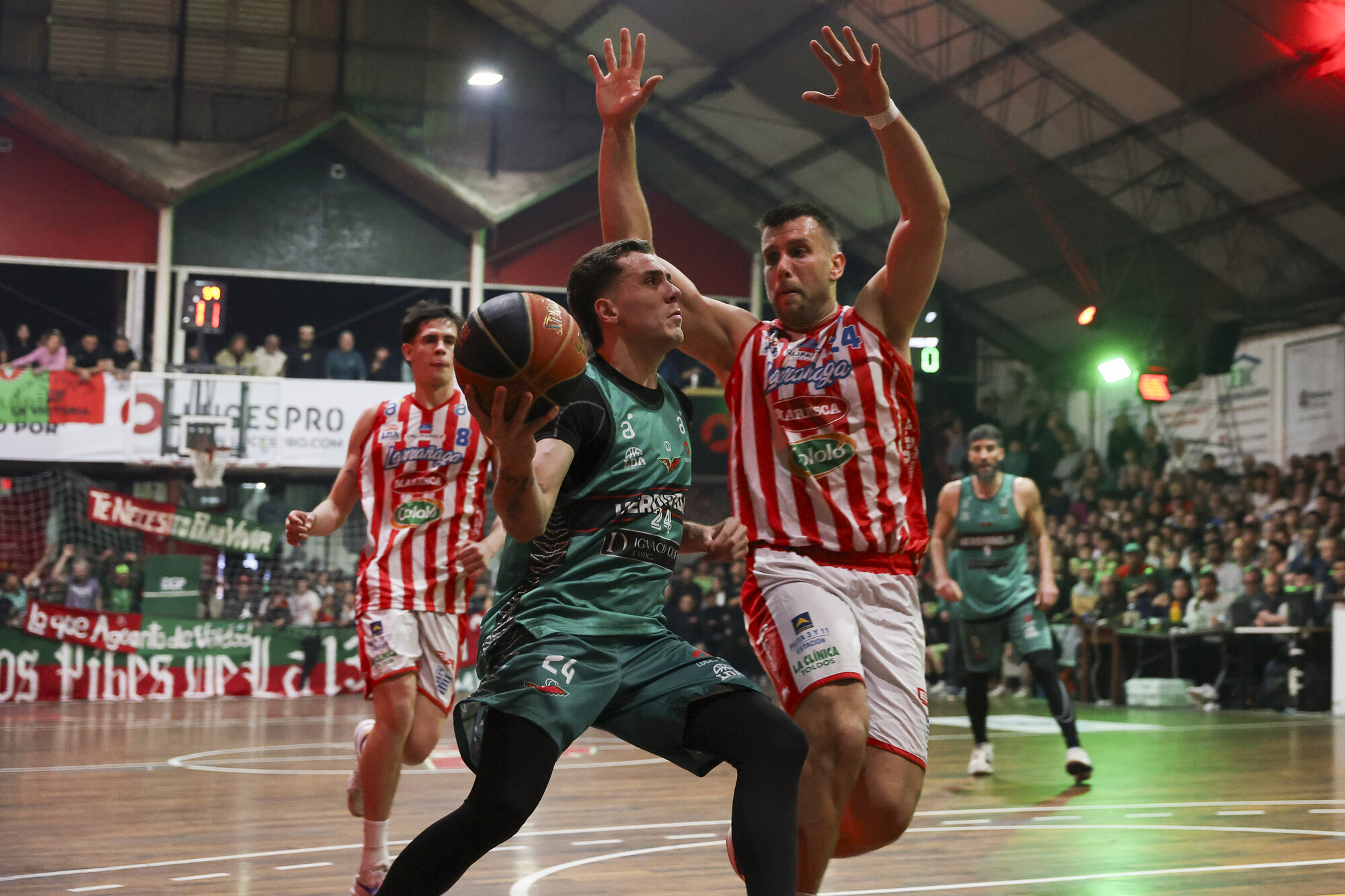 Xavier Couste, de Verdirrojo, y Agustín Zuvich, de Larrañaga, el 12 de setiembre, en la cancha de Verdirrojo.