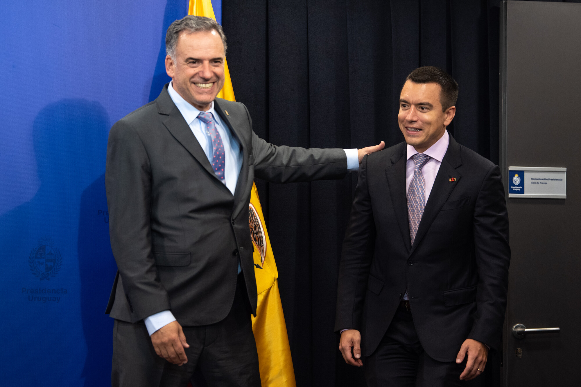 Yamandú Orsi y Daniel Noboa, el 19 de agosto, durante la conferencia de prensa conjunta, en la Torre Ejecutiva.