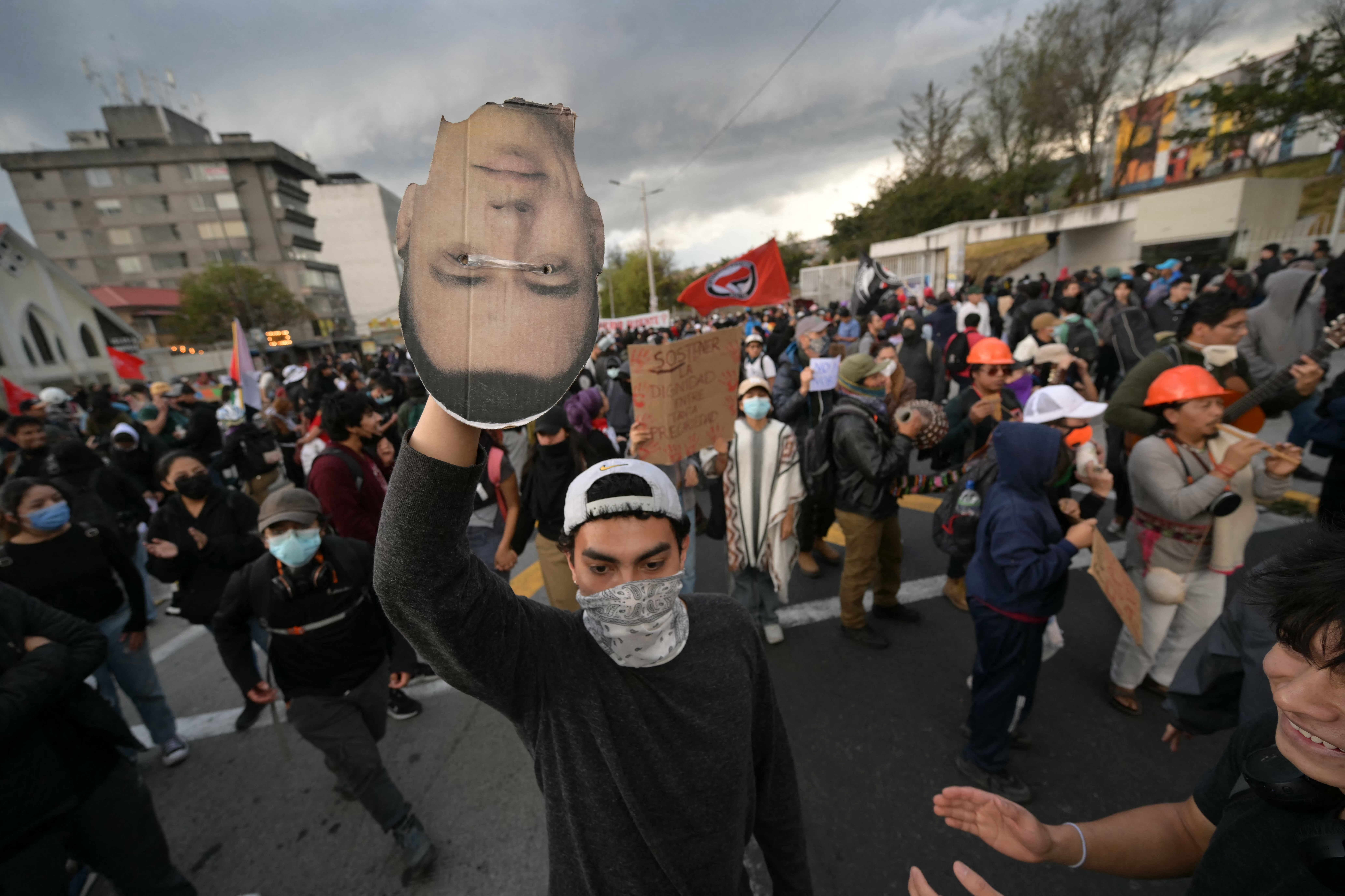 Movilización de estudiantes durante la marcha en apoyo al paro nacional convocado por la Conaie, el 23 de setiembre, en Quito.