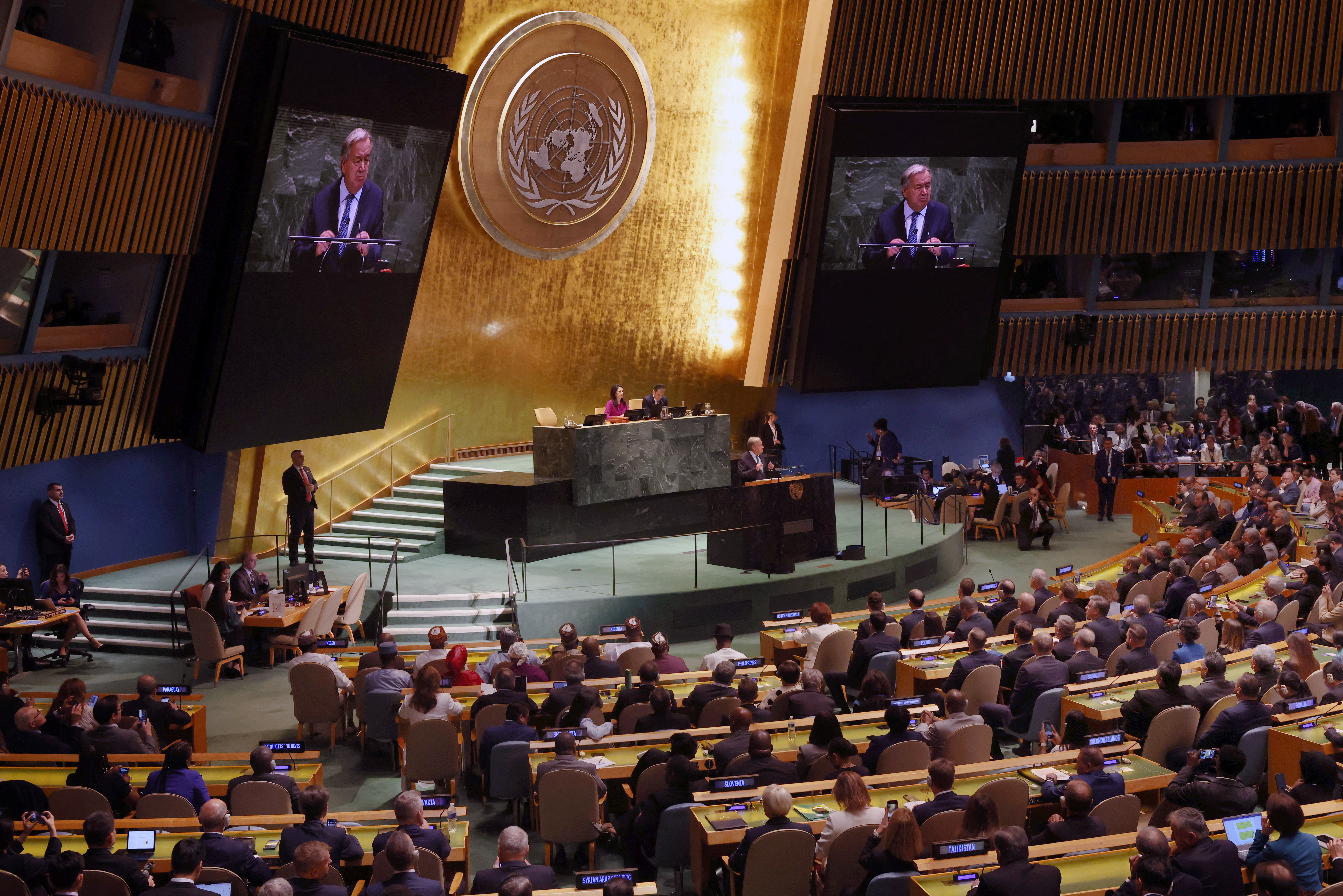 El secretario general de la ONU, António Guterres, durante su intervención ante la Asamblea General, el martes 23 de setiembre, en la ciudad de Nueva York.